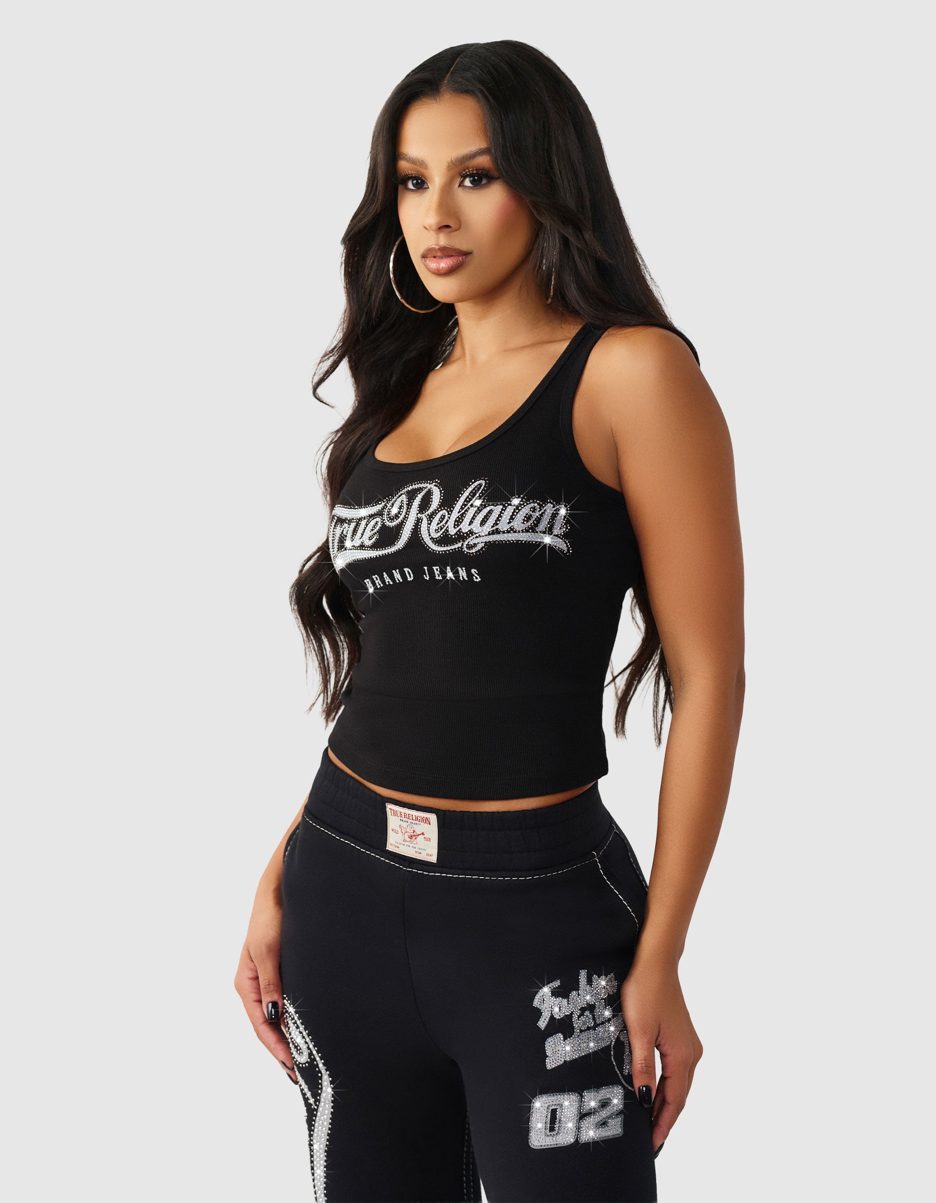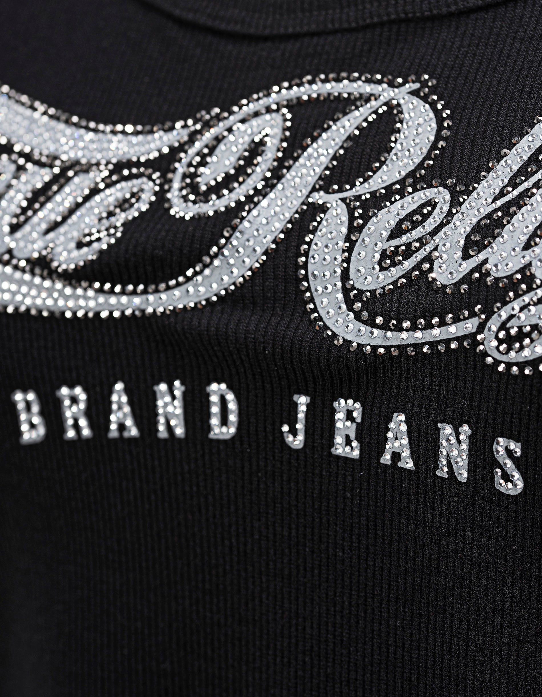 Geripptes Tanktop mit Strass-Verzierung