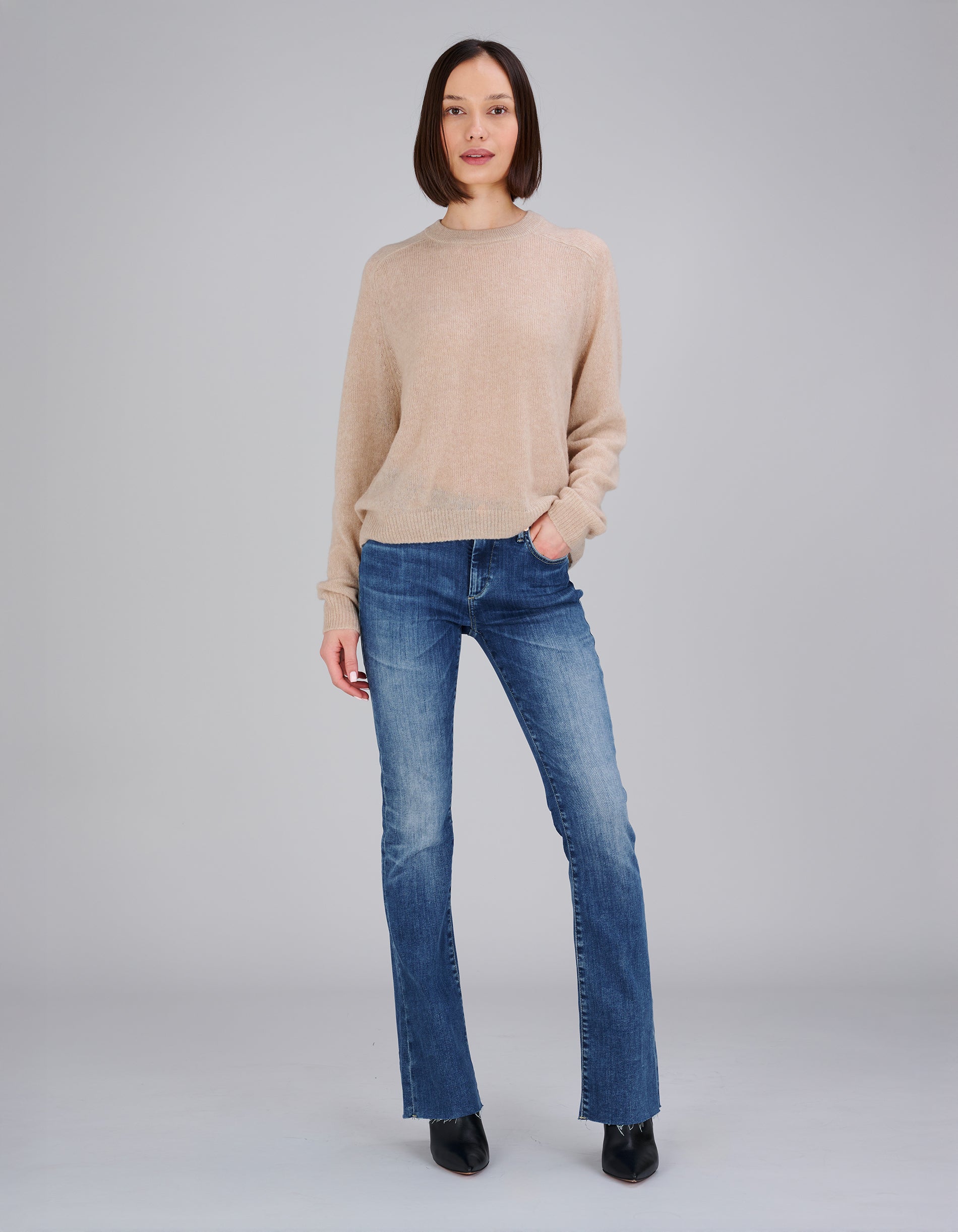 Kaschmir-Seide-Mix Raglan-Pullover Amara Saddle Crew