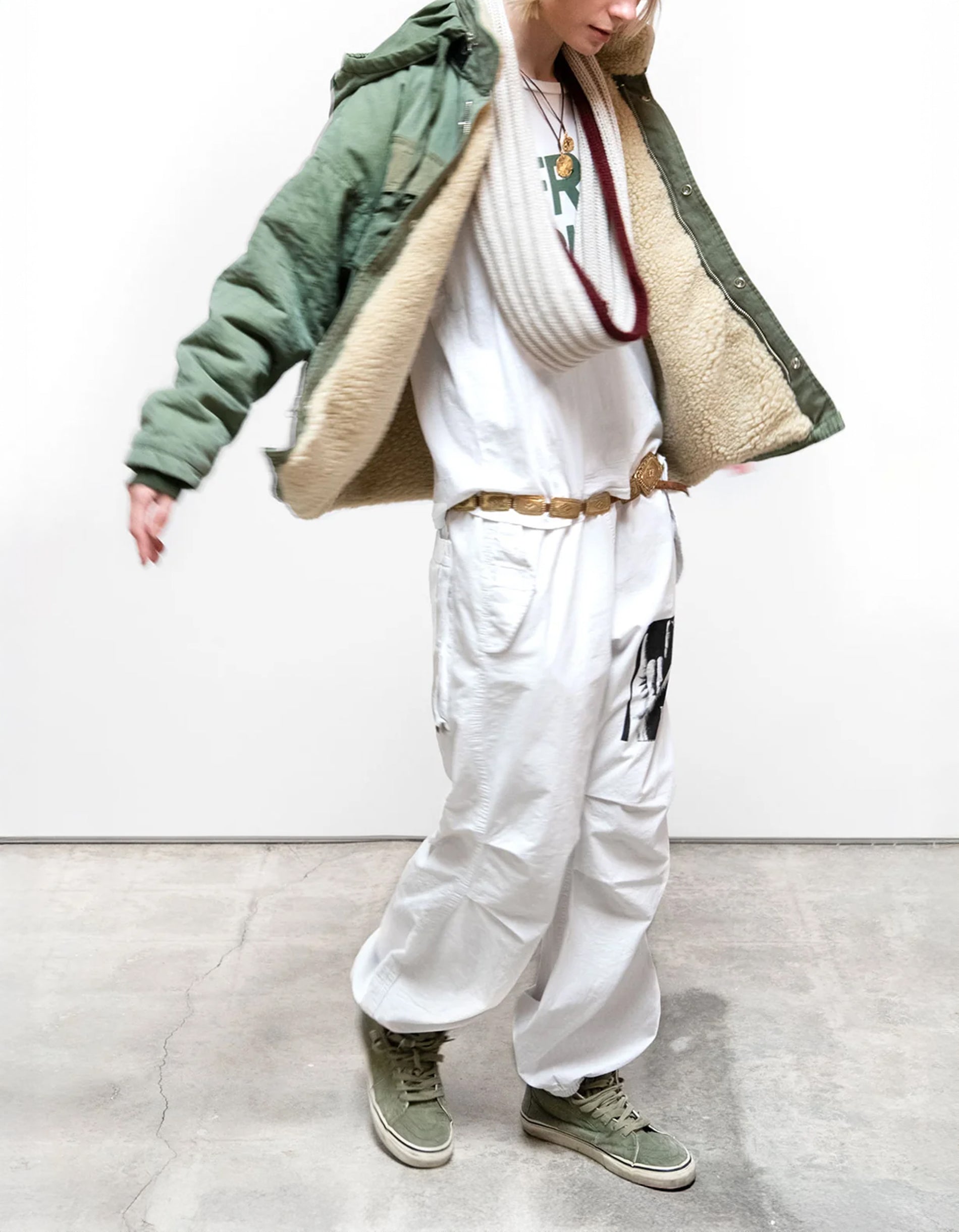 Bedruckte Army-Jacke Sherpa mit Fell-Futter