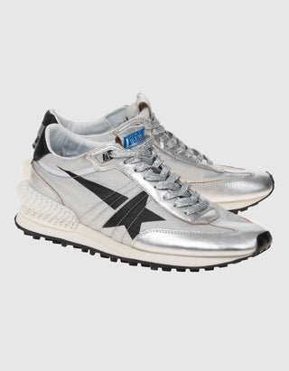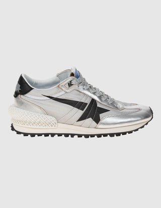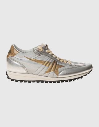 Nylon-Sneaker mit Leder-Details und Glitter-Finish