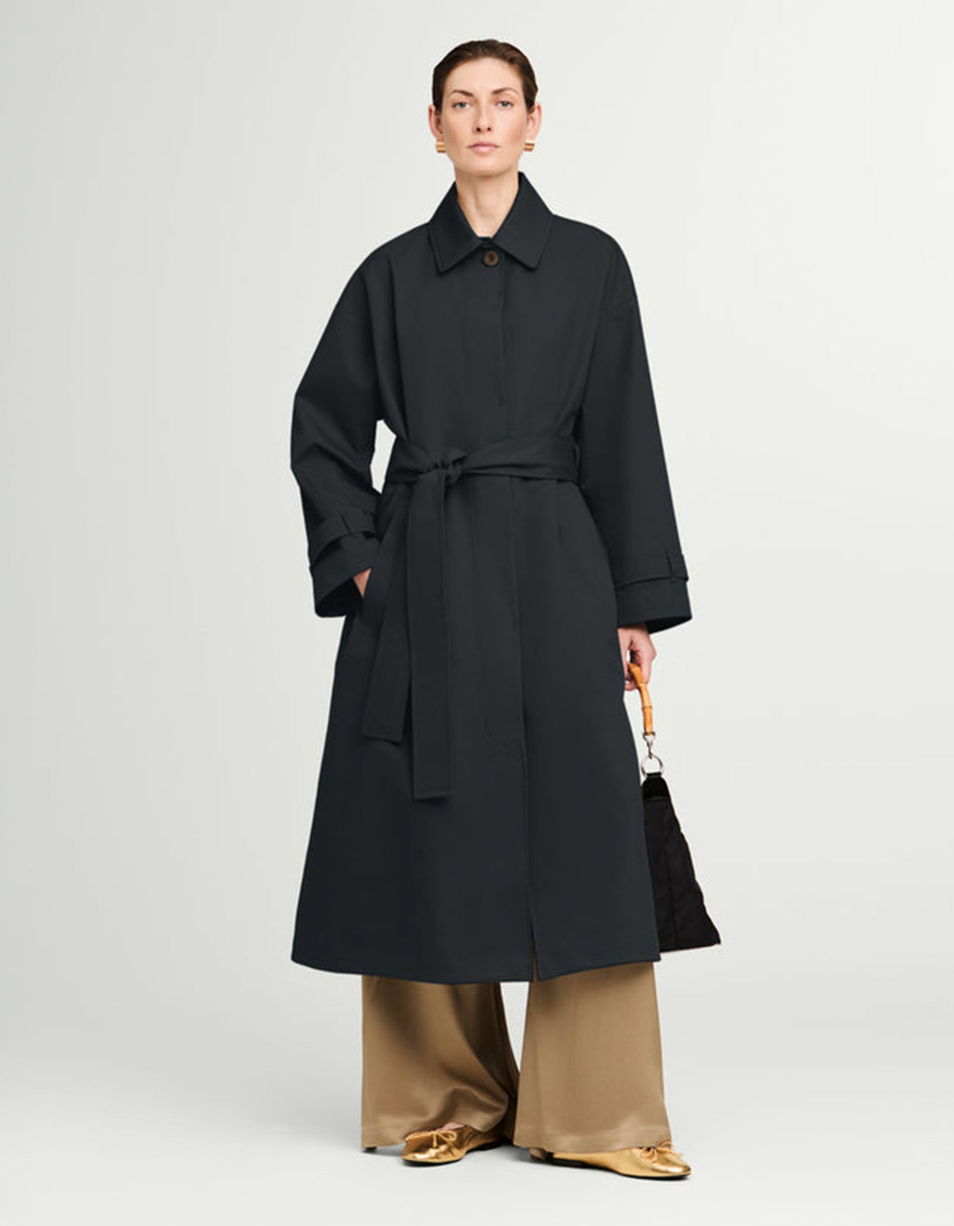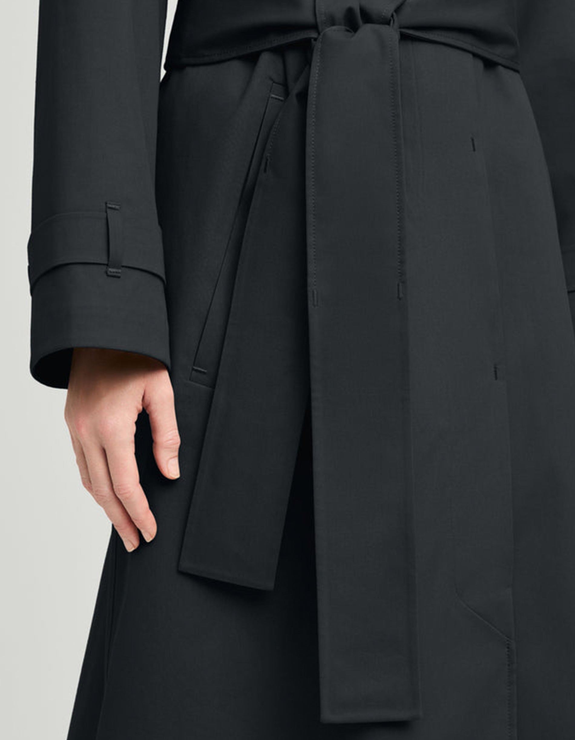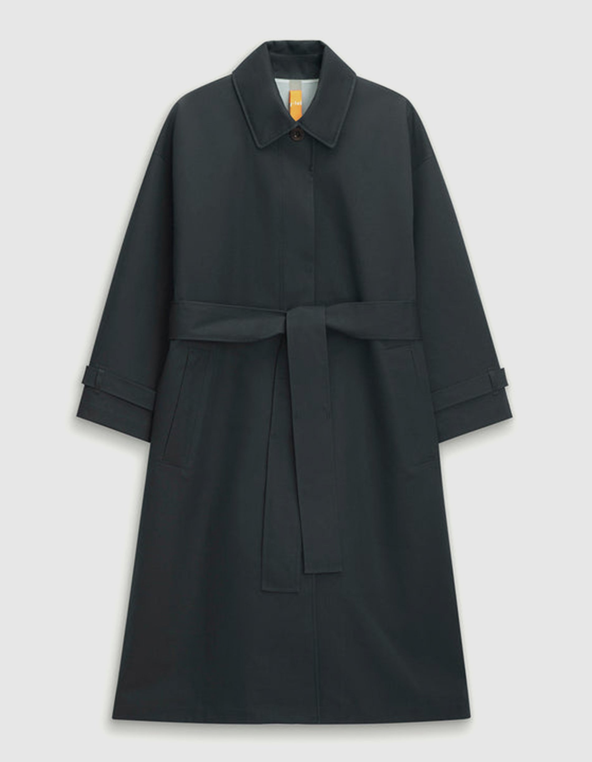 - Einreihiger Frontverschluss mit verdeckten Knöpfen