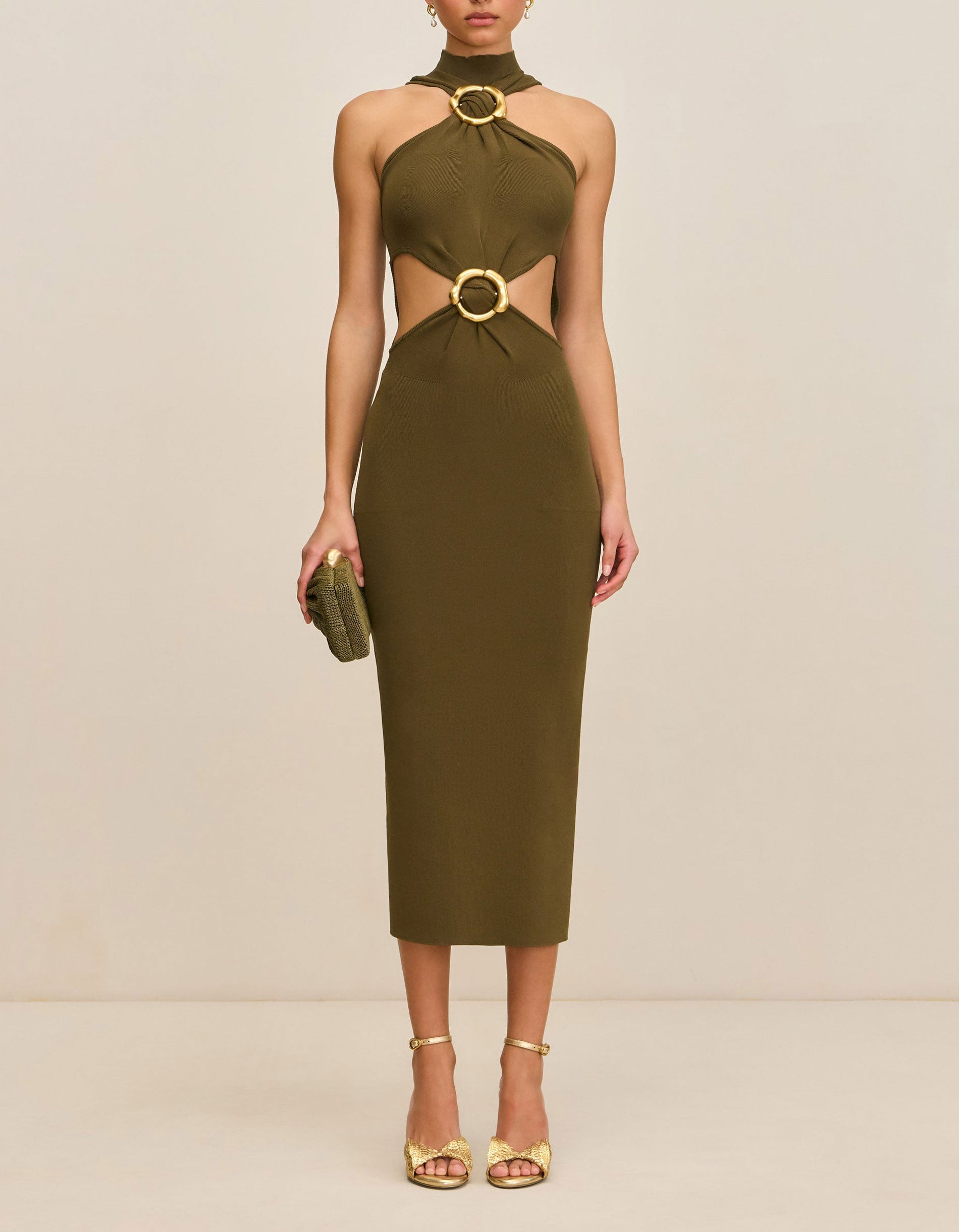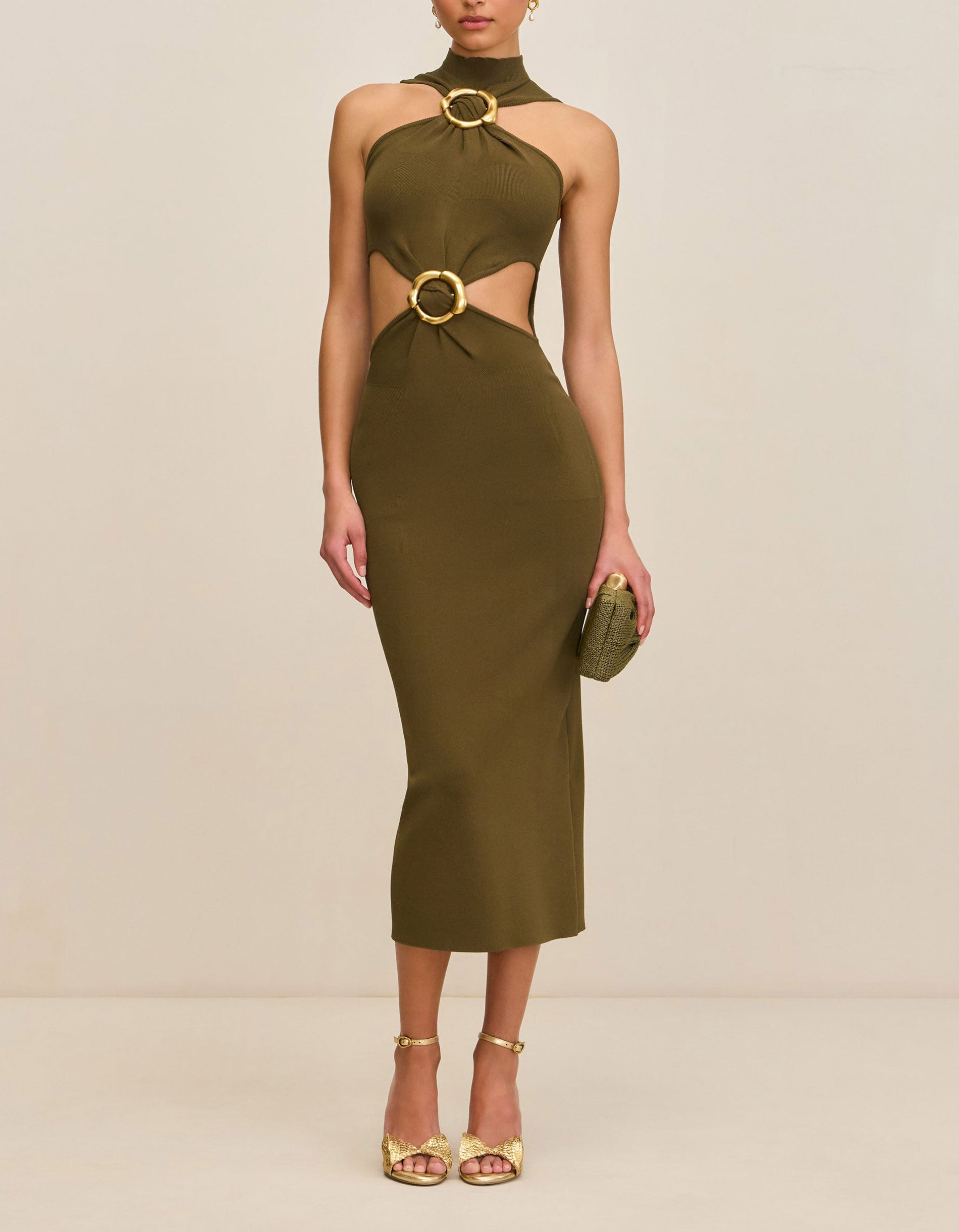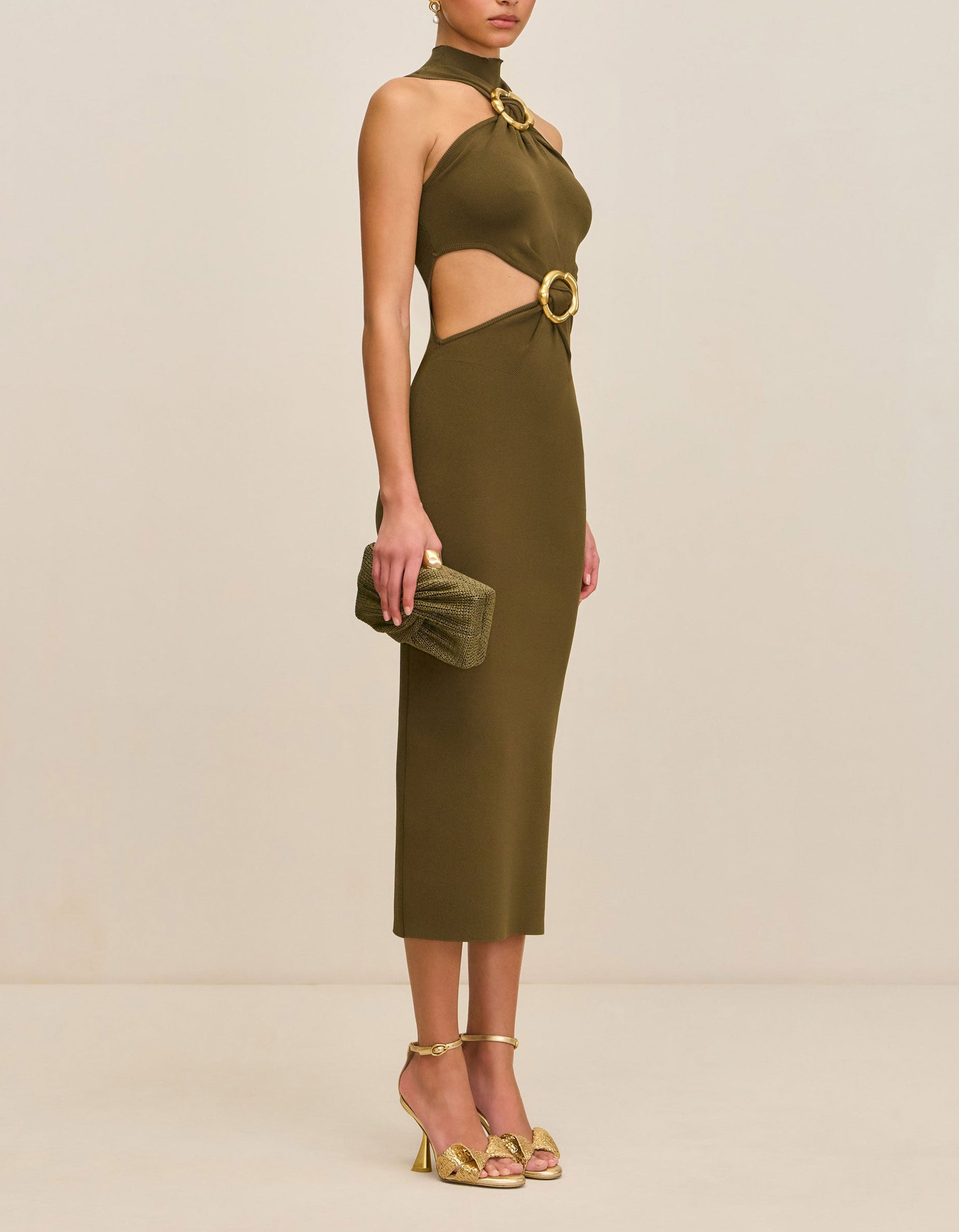 Midi Feinstrick-Kleid Ambar mit Cut-Outs und Metall-Details