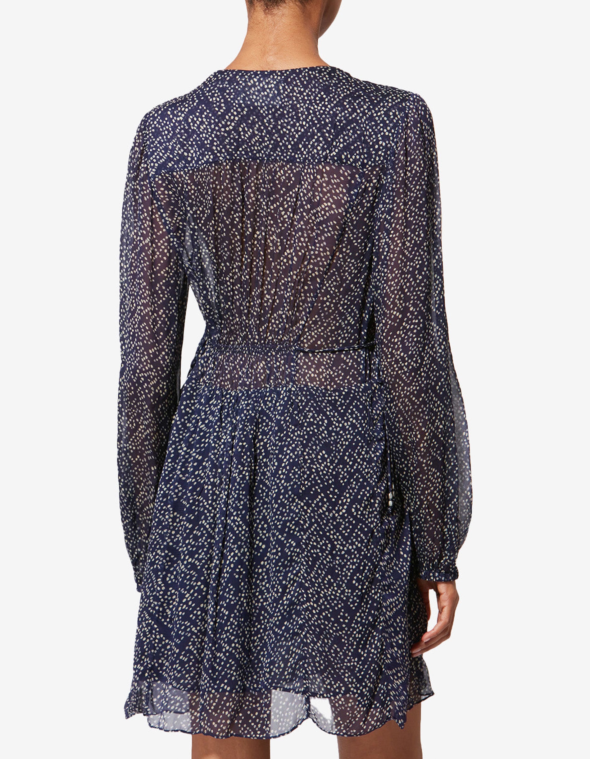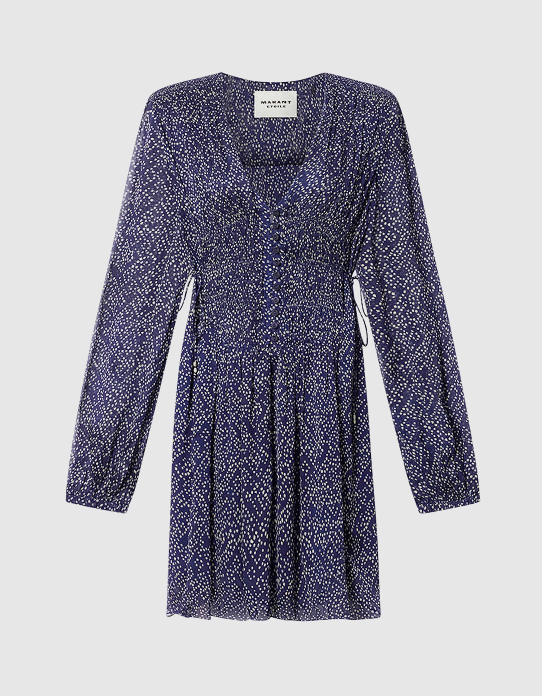 - Verstellbare Taille mit seitlichen Bindebändern, veredelt mit Metallperlen