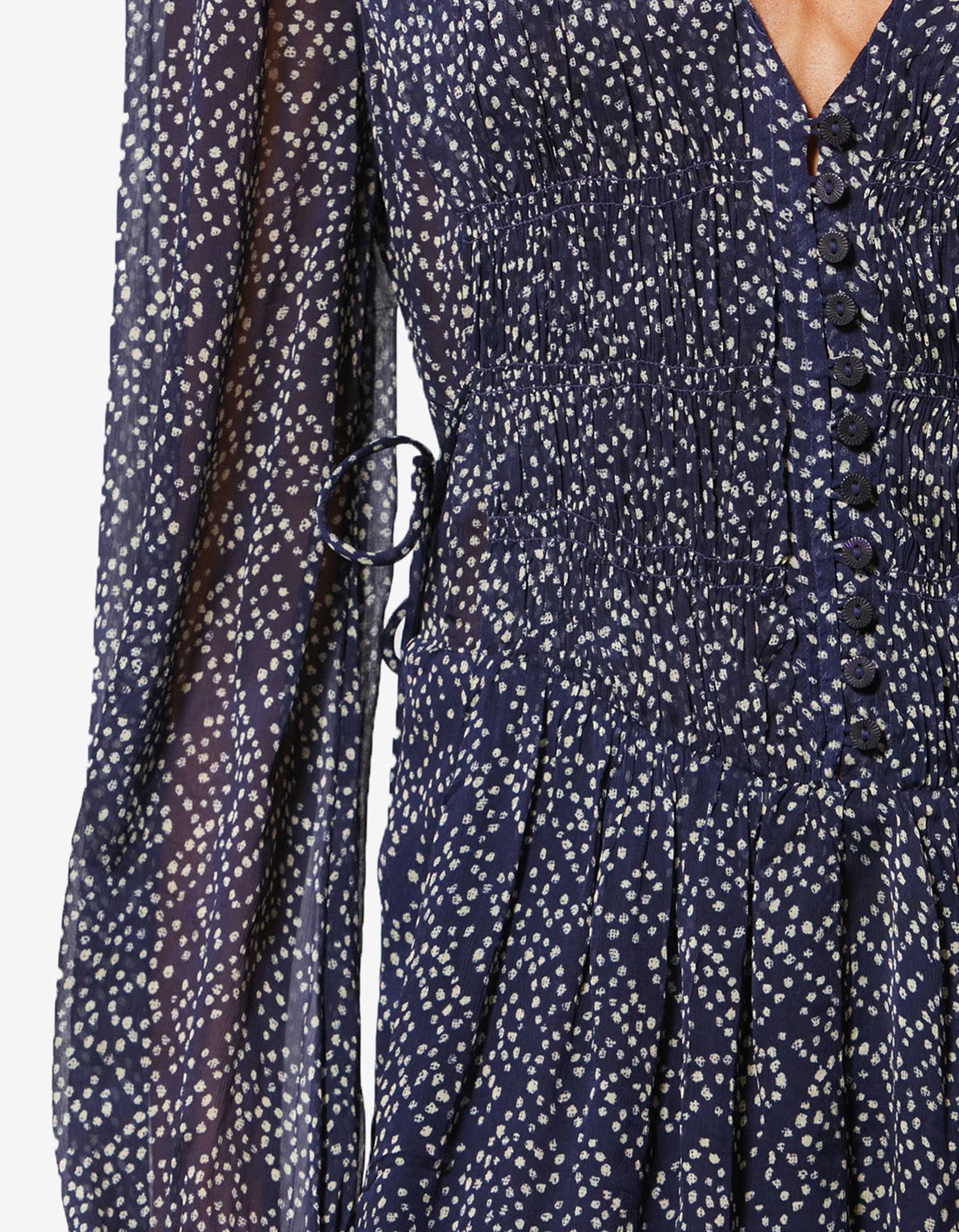 - Einsatz mit Smokdetails und transparenten Partien im Brustbereich