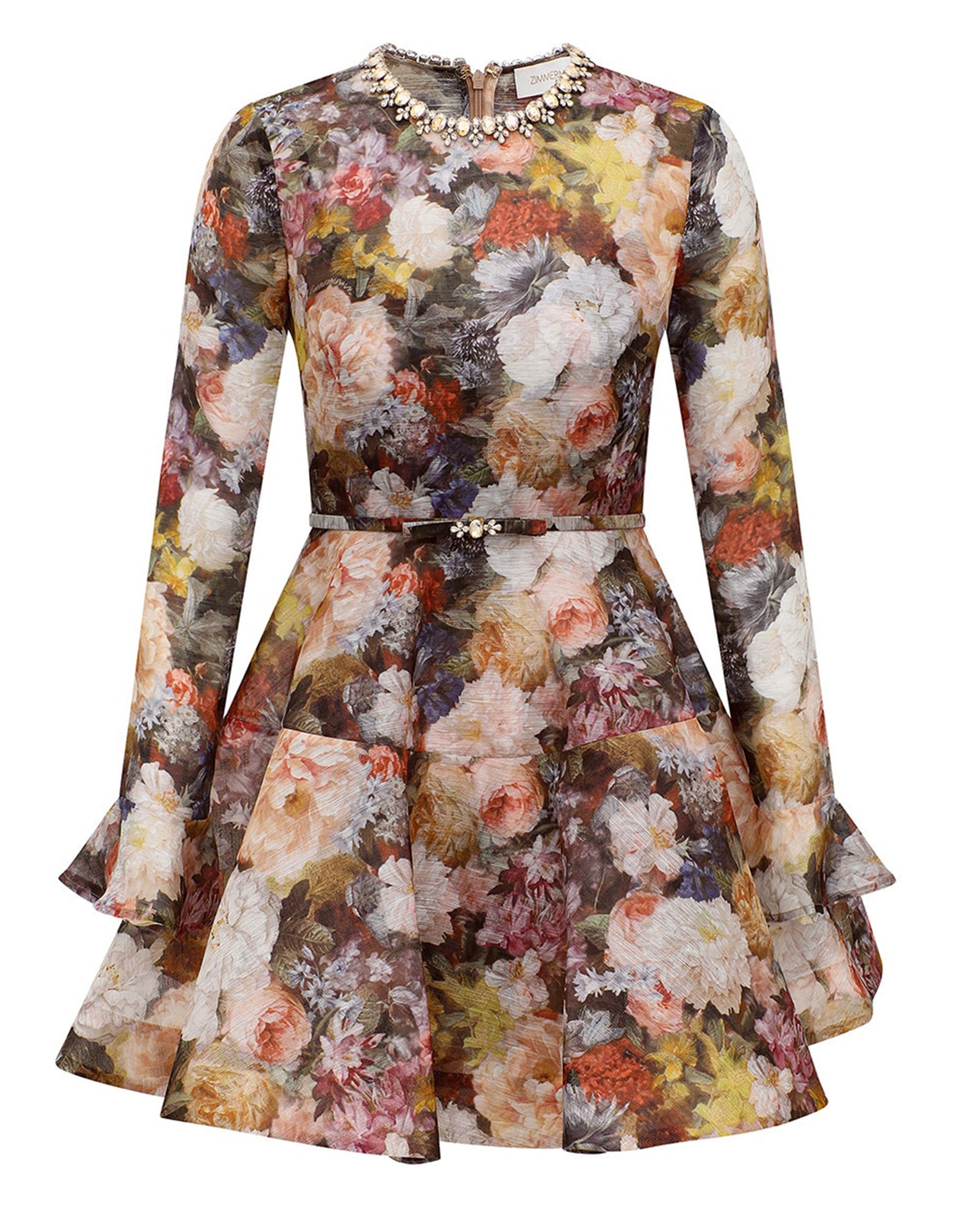 Gemustertes Mini-Kleid Alchemy Peplum mit Schmuckstein-Verzierung