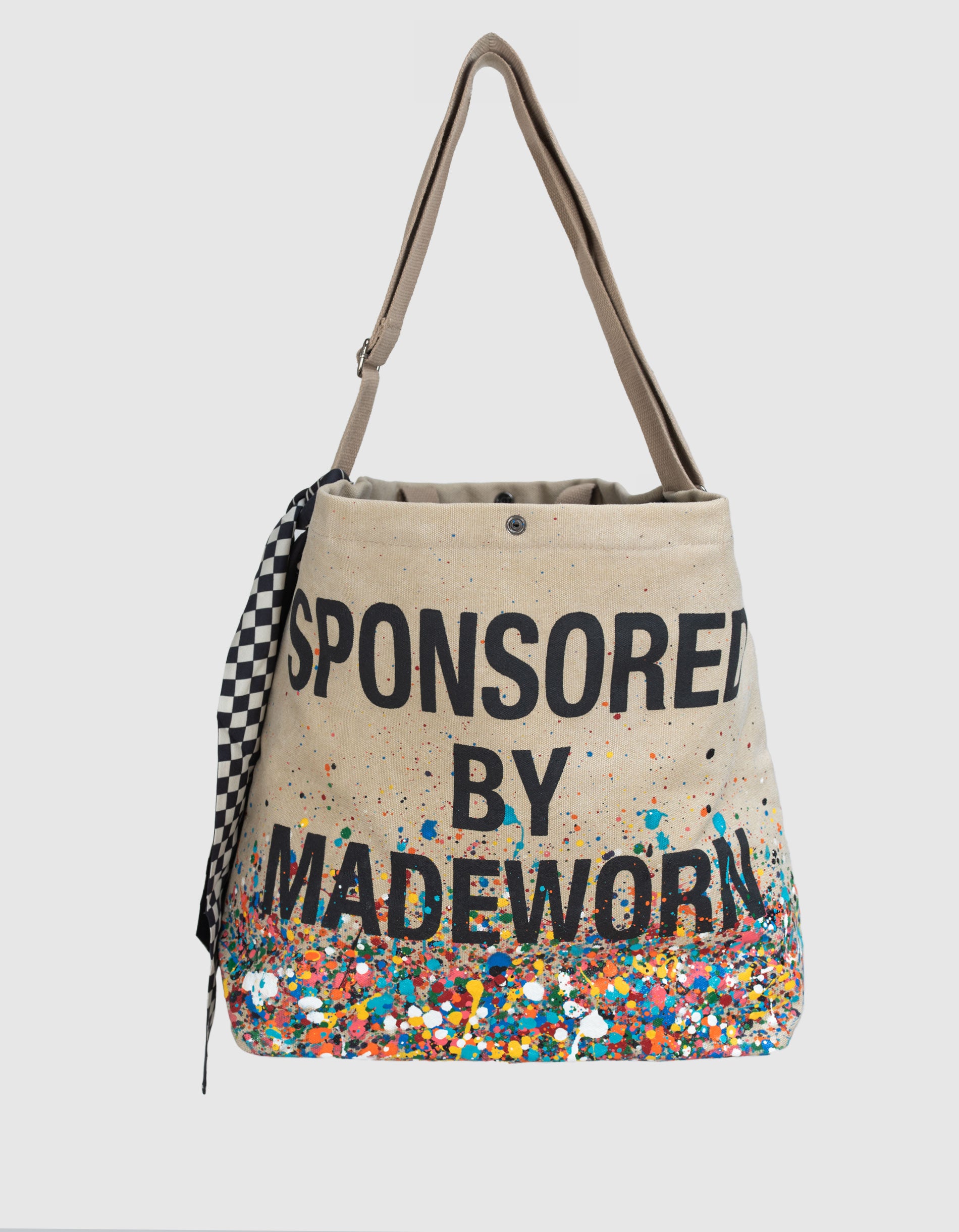Bedruckte Tasche mit Farbklecksen und abnehmbaren Seiden-Tuch