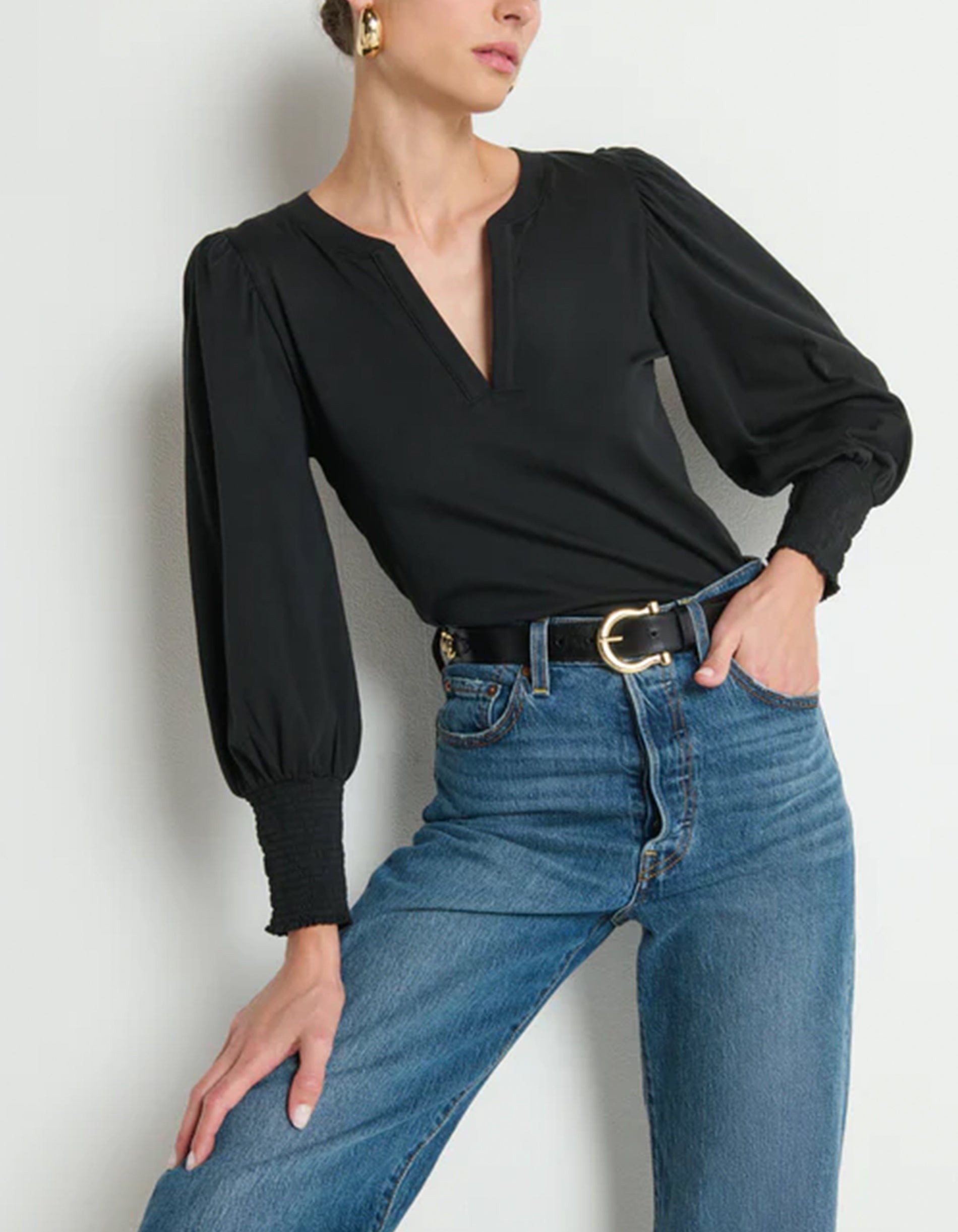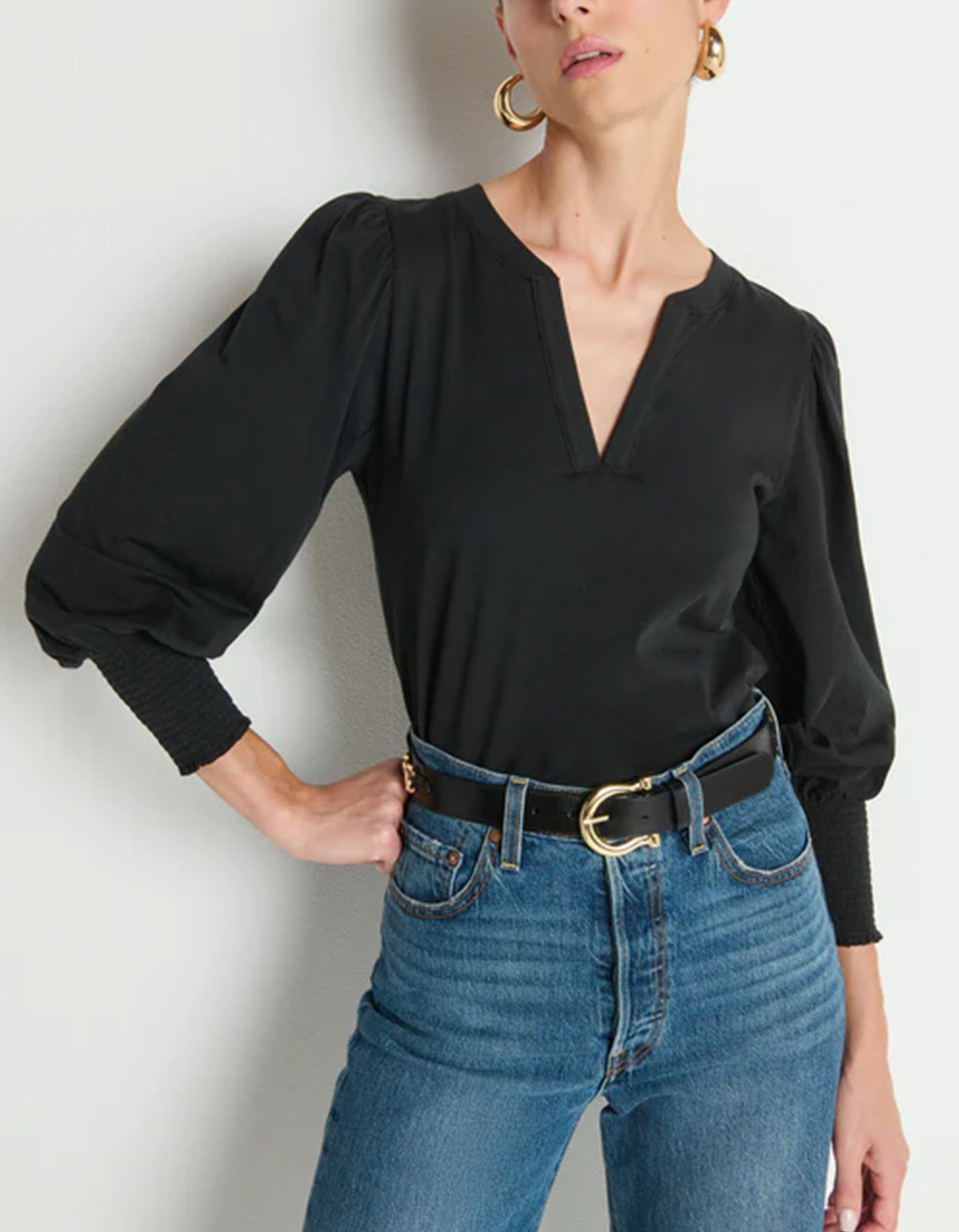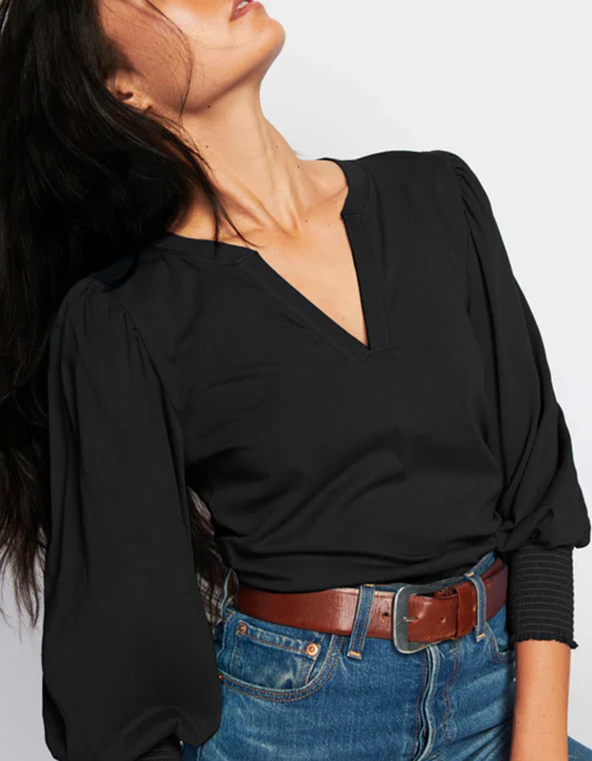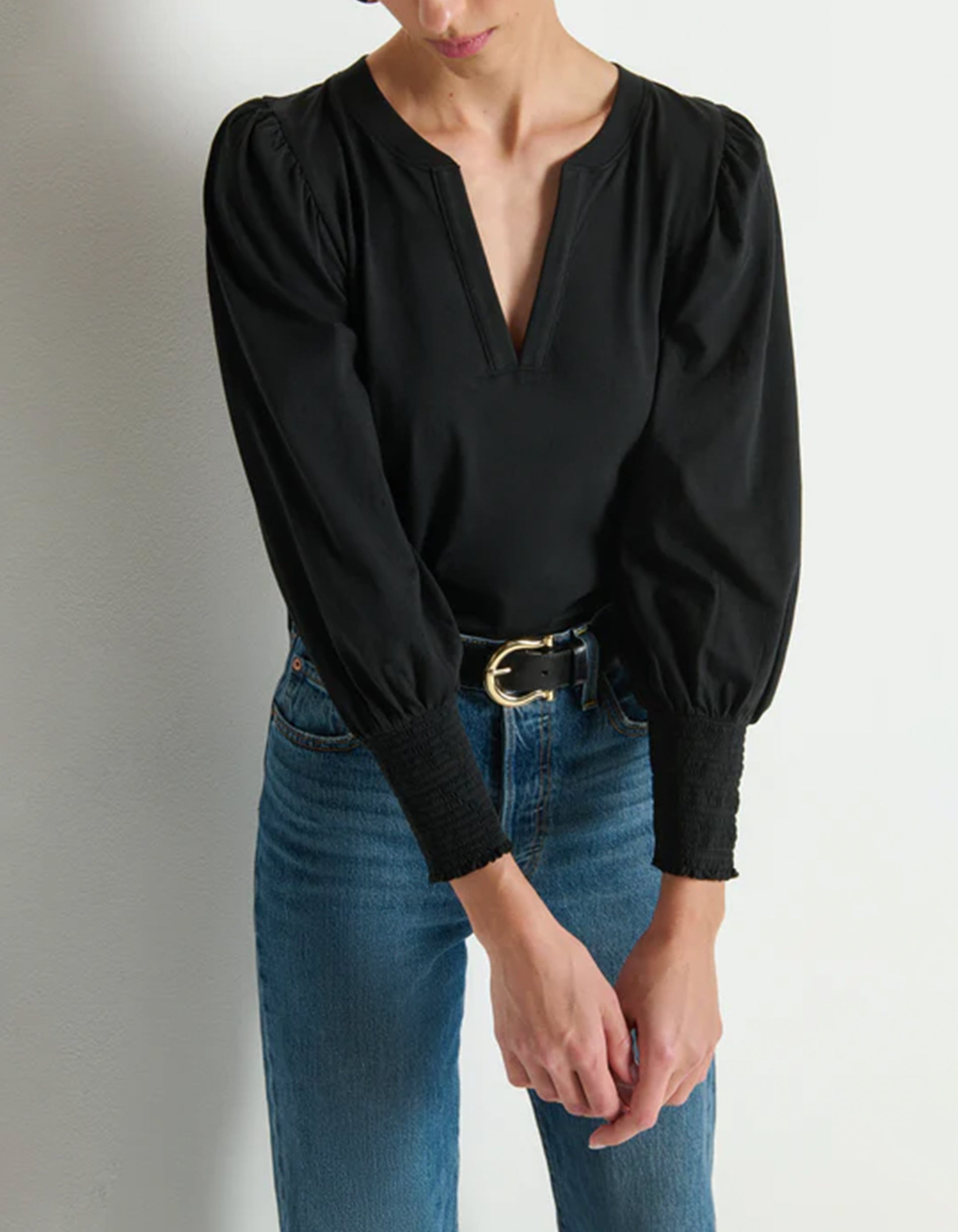 Shirt Flora mir Ballon-Ärmeln und Schlitz-Auschnitt