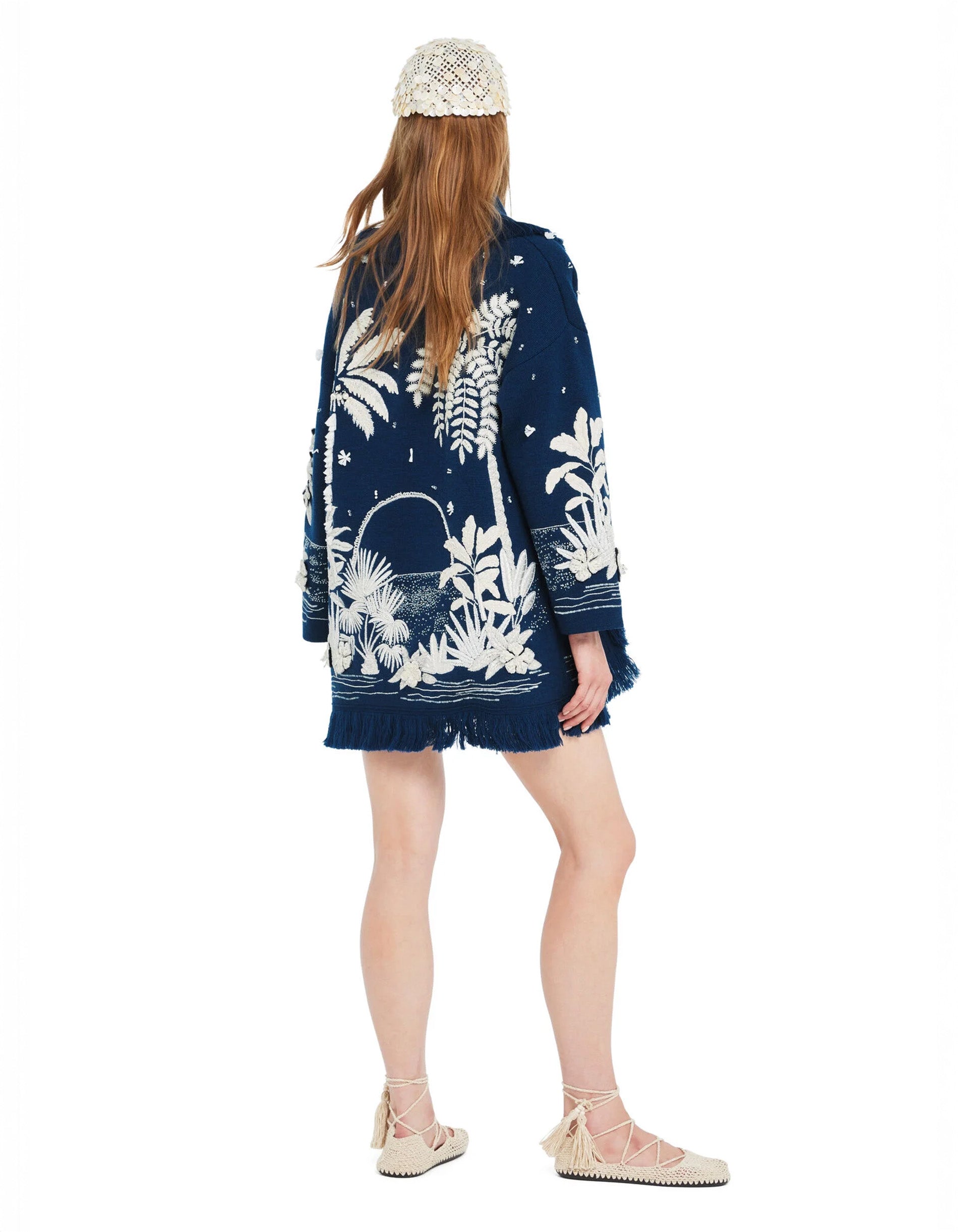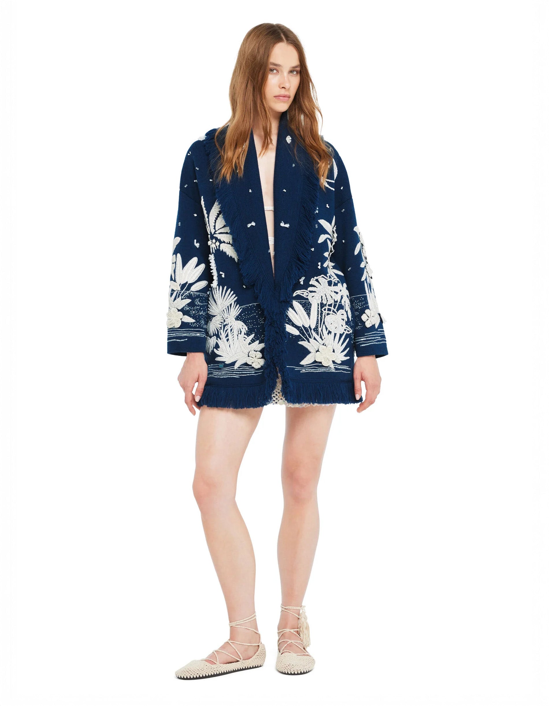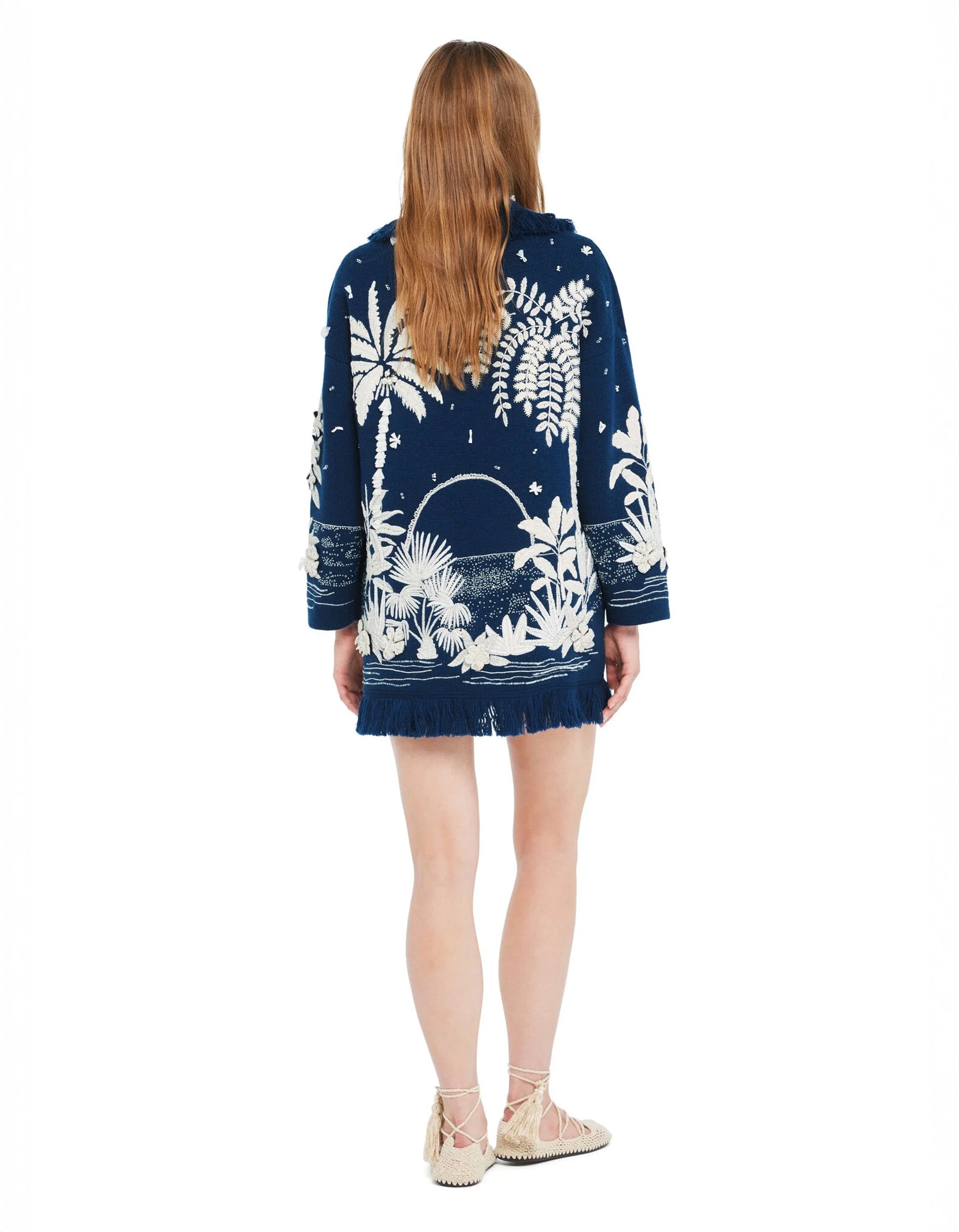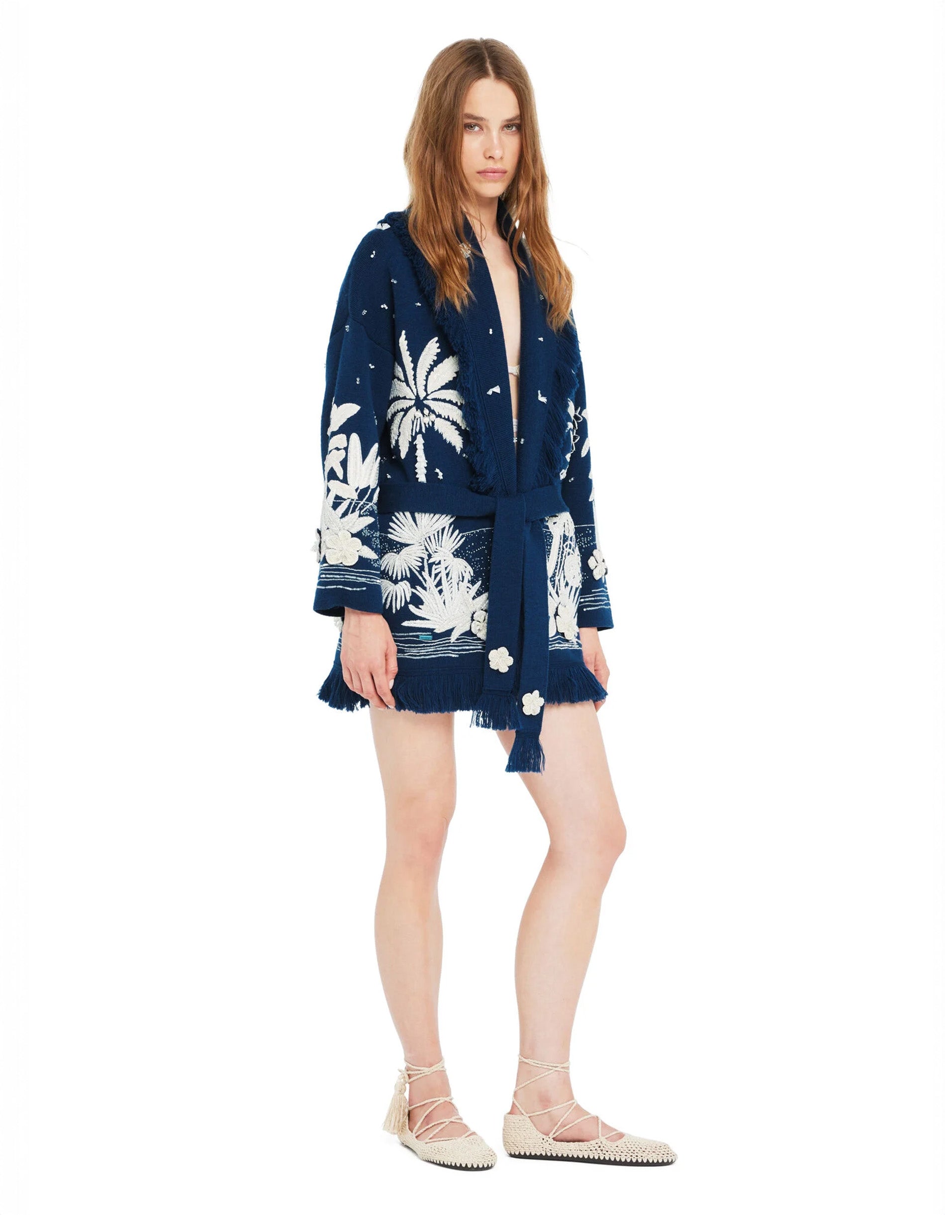 Woll-Cardigan Postcard from Paradise mit Stickerei- und Perlenverzierung