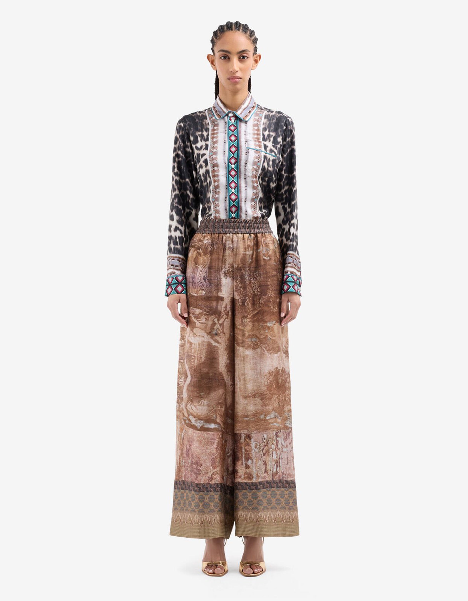 Gemusterte Wide-Leg Seiden-Hose