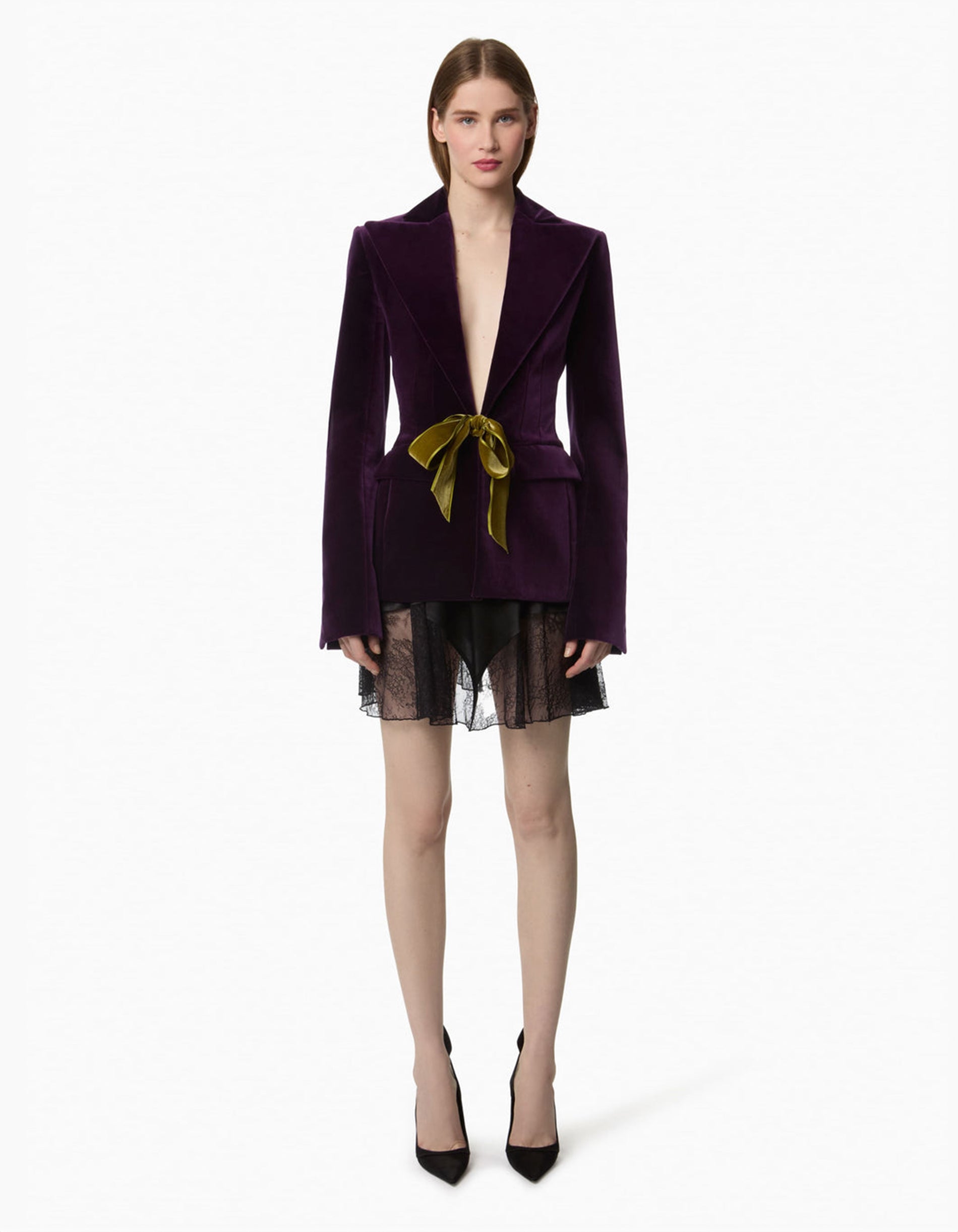 Samt-Blazer mit abnehmbarer Schleife