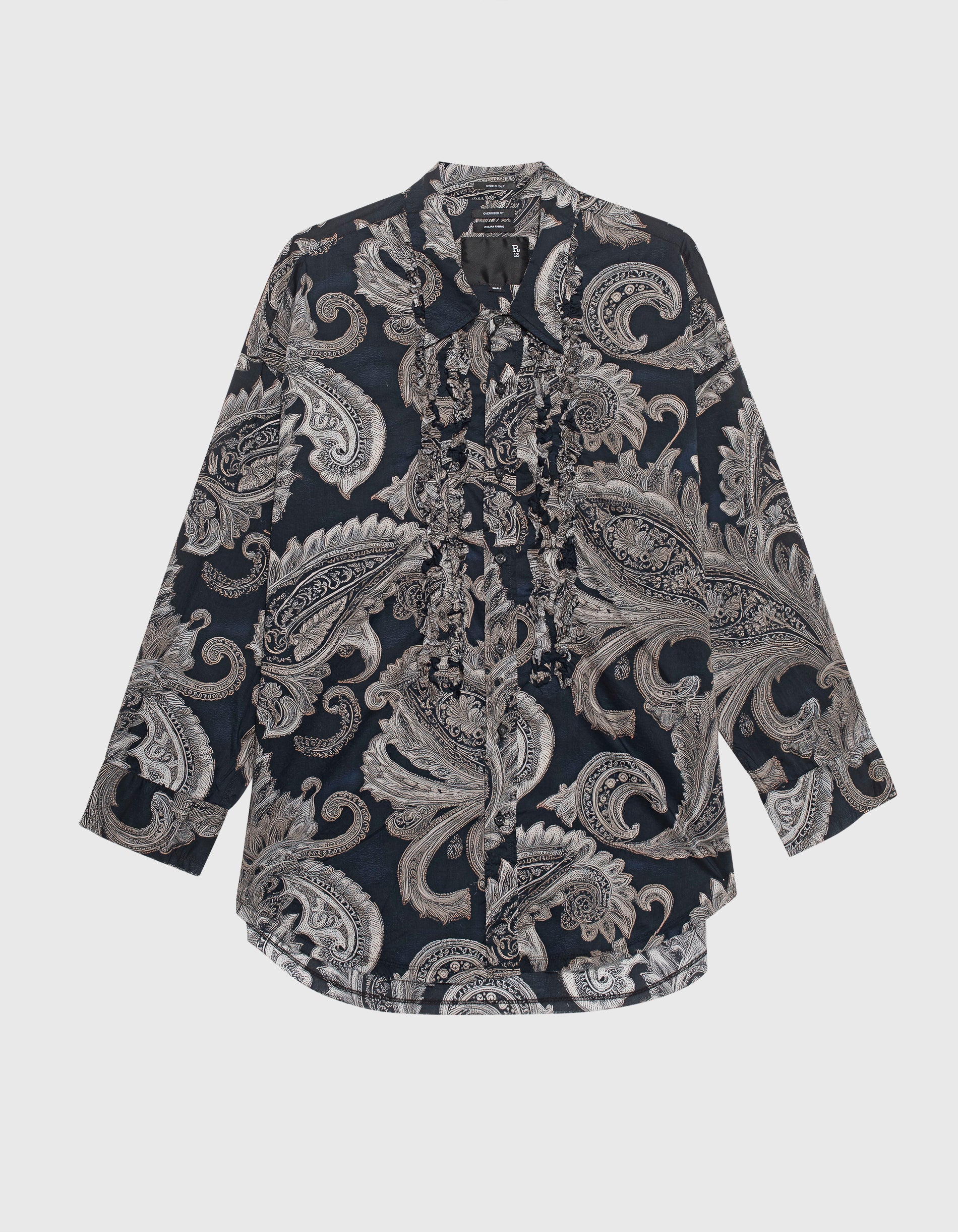 Oversize Shredded Seam Ruffle Paisley