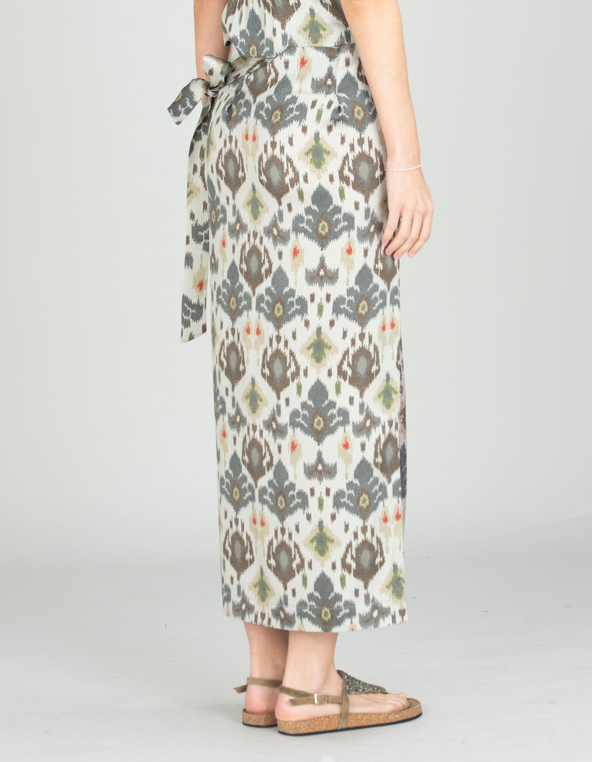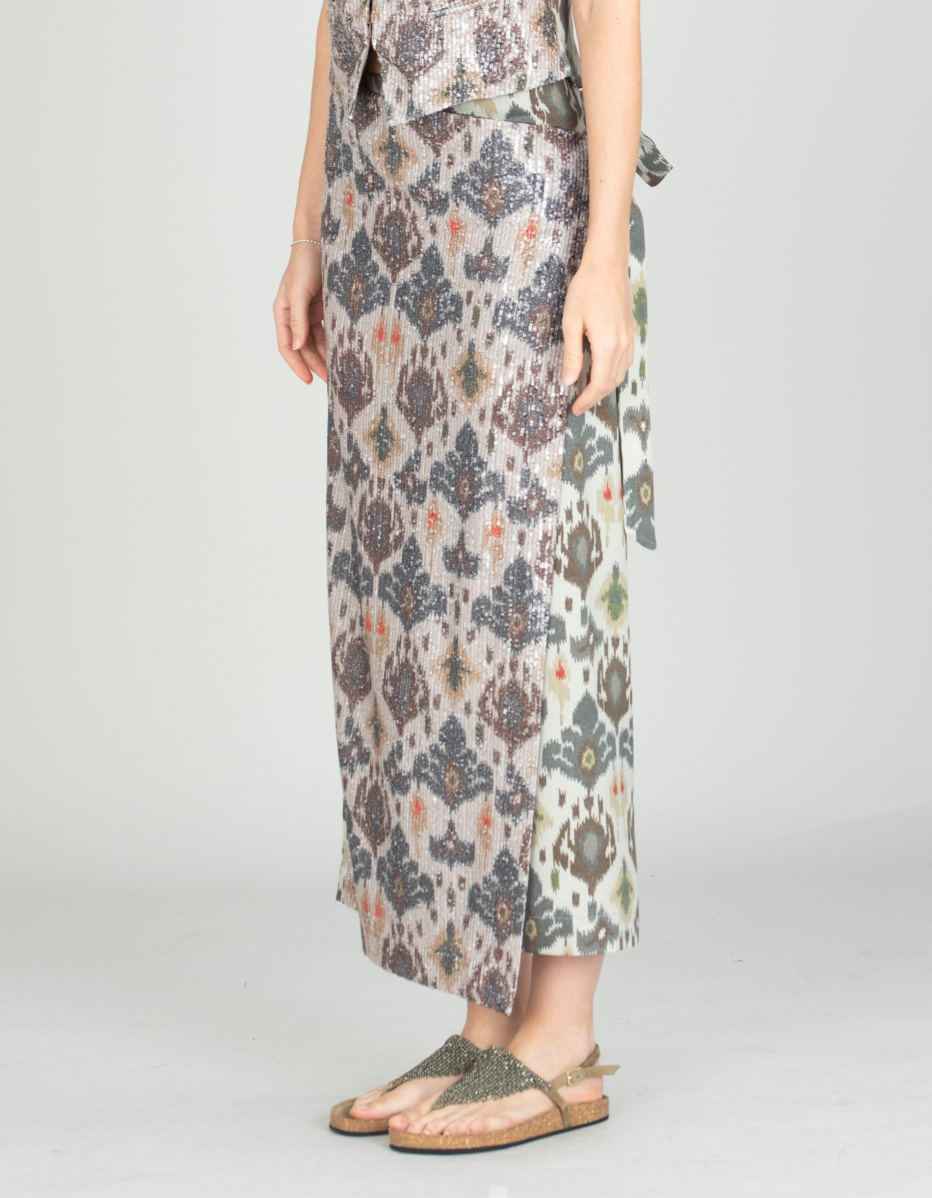 Gemusterter Wickel-Midi-Rock mit Pailletten-Verzierung