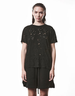 Destroyed-Look Leinen-Mix T-Shirt