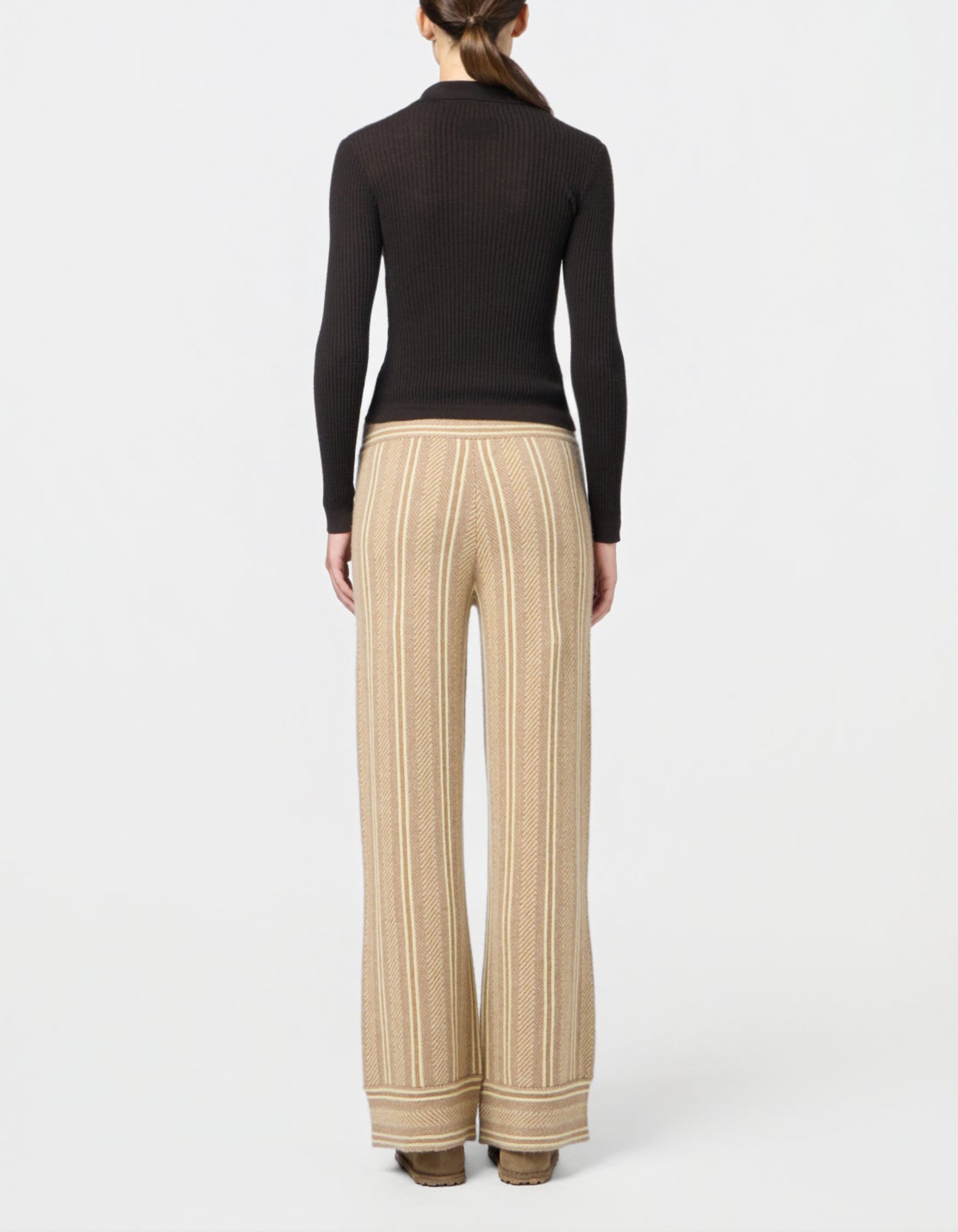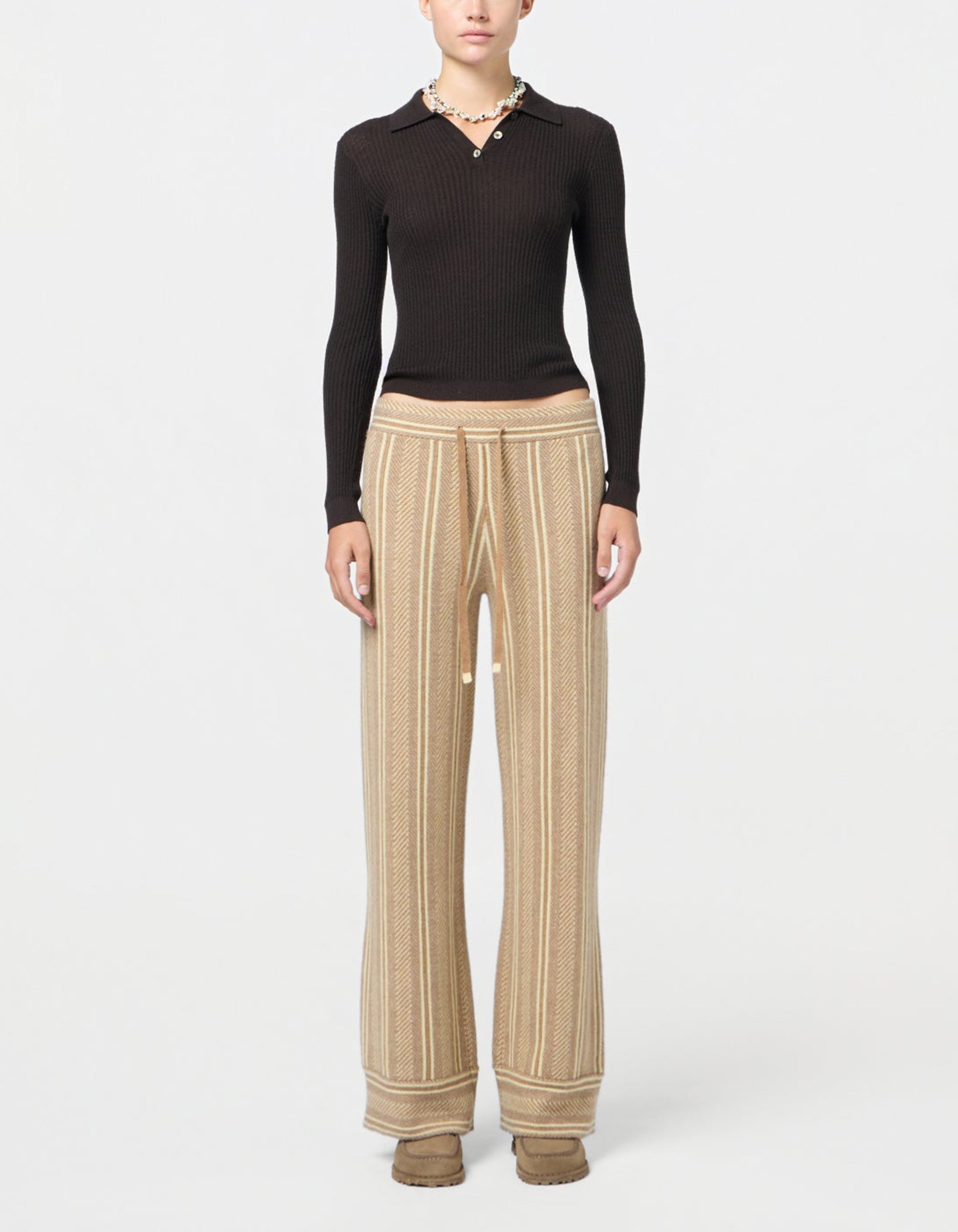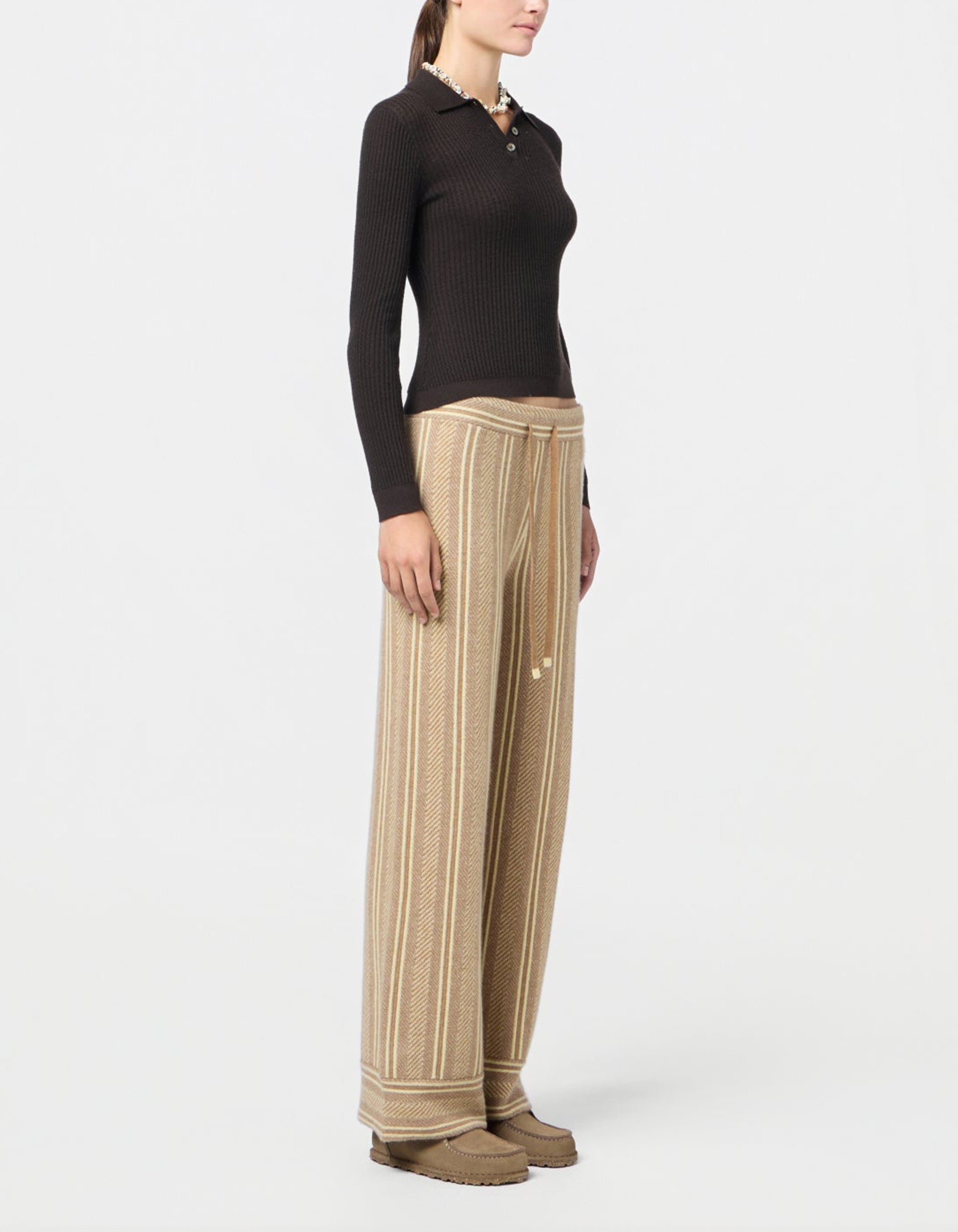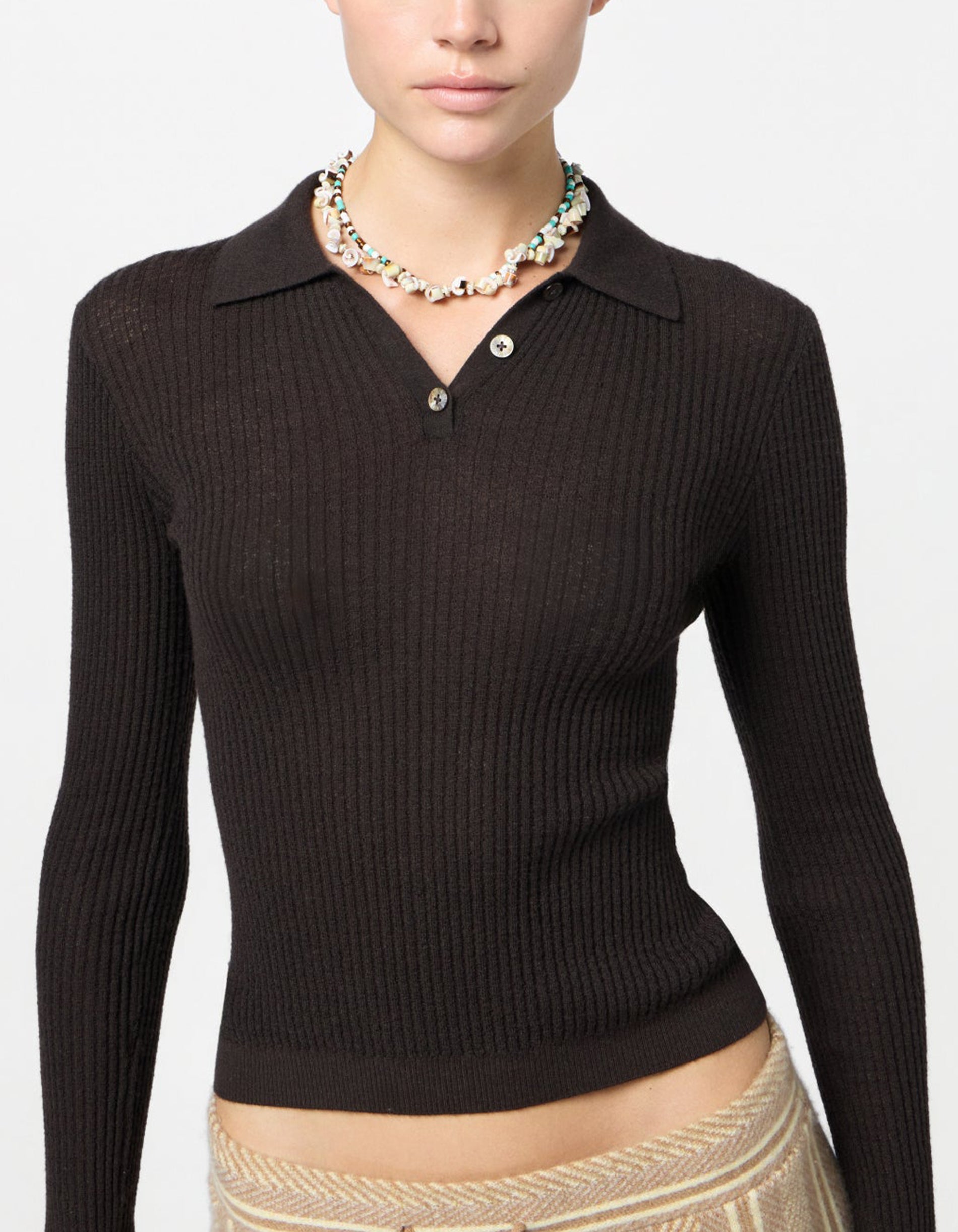 Geripptes Kaschmir-Polo Longsleeve Shrunken