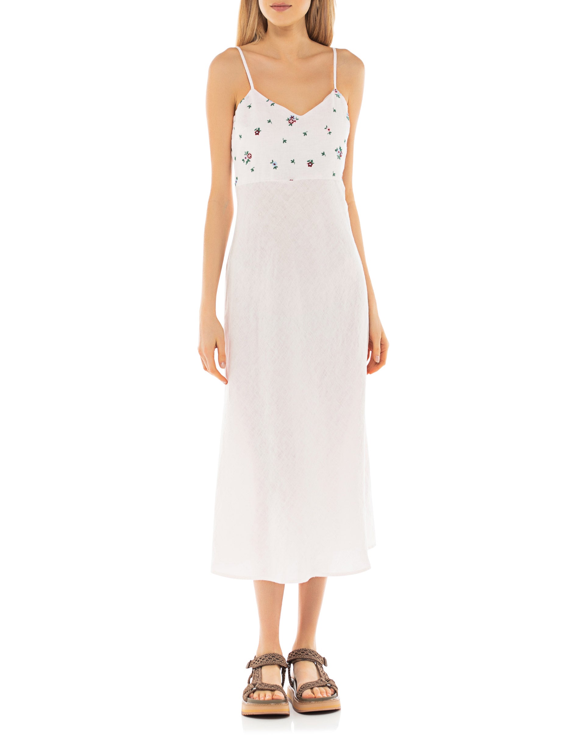 Träger-Midi-Kleid mit Stickerei