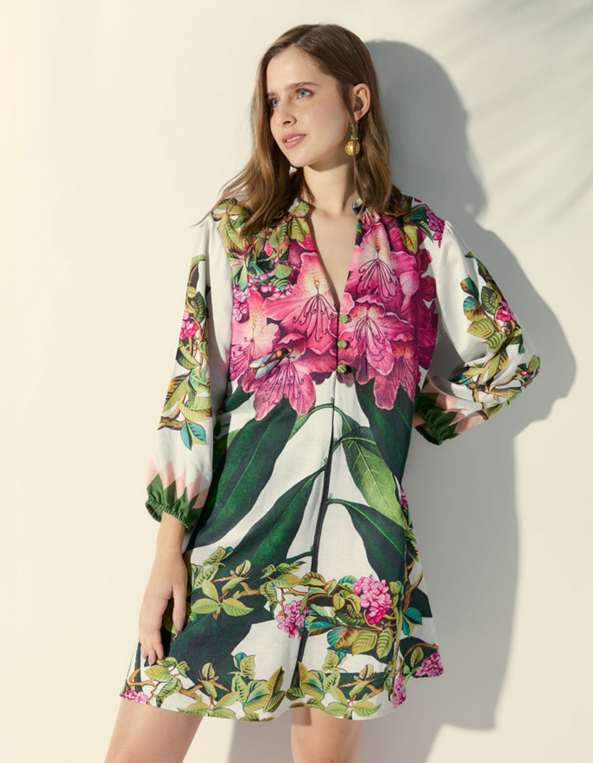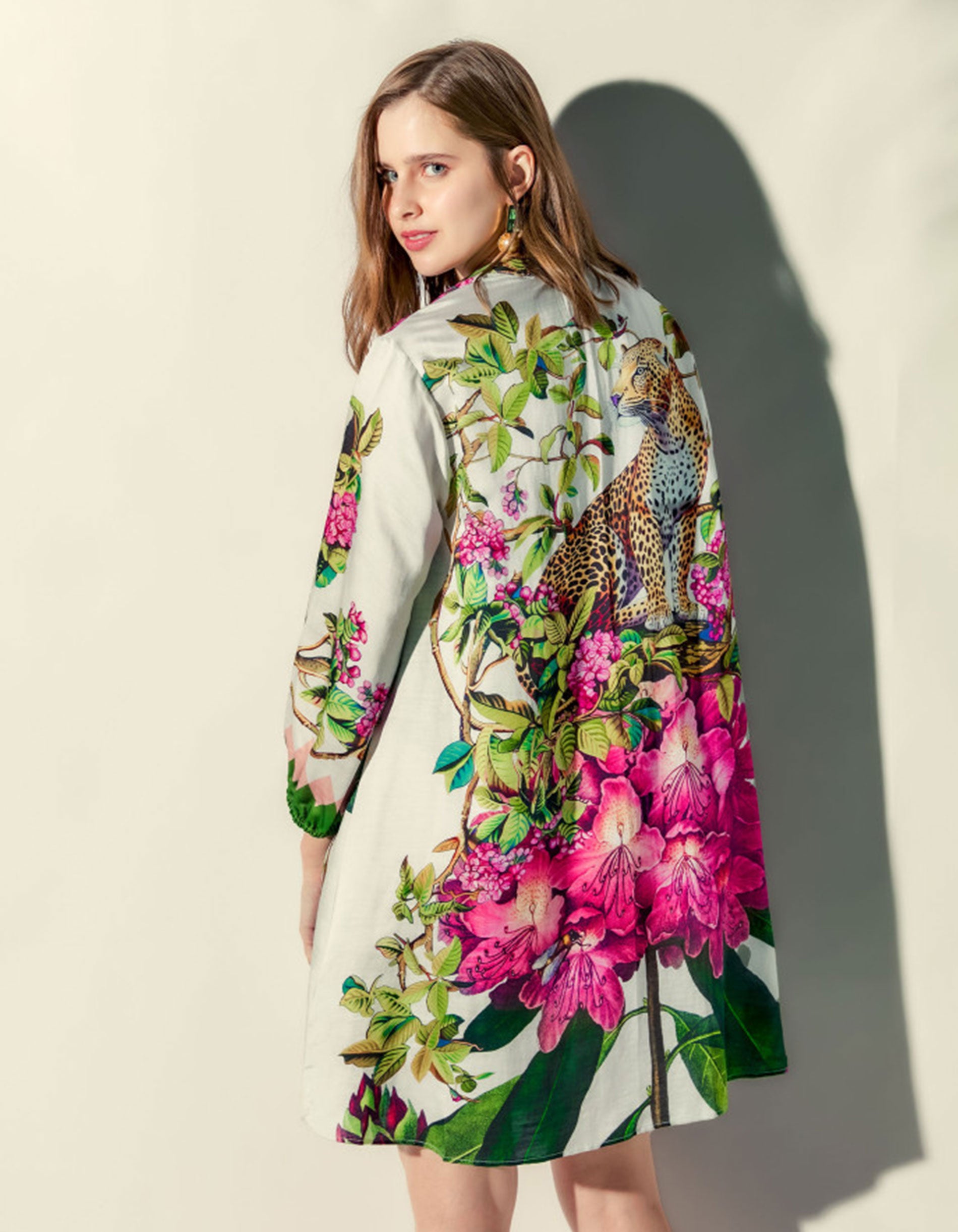 Gemustertes Leinen-Seiden-Mix Kleid