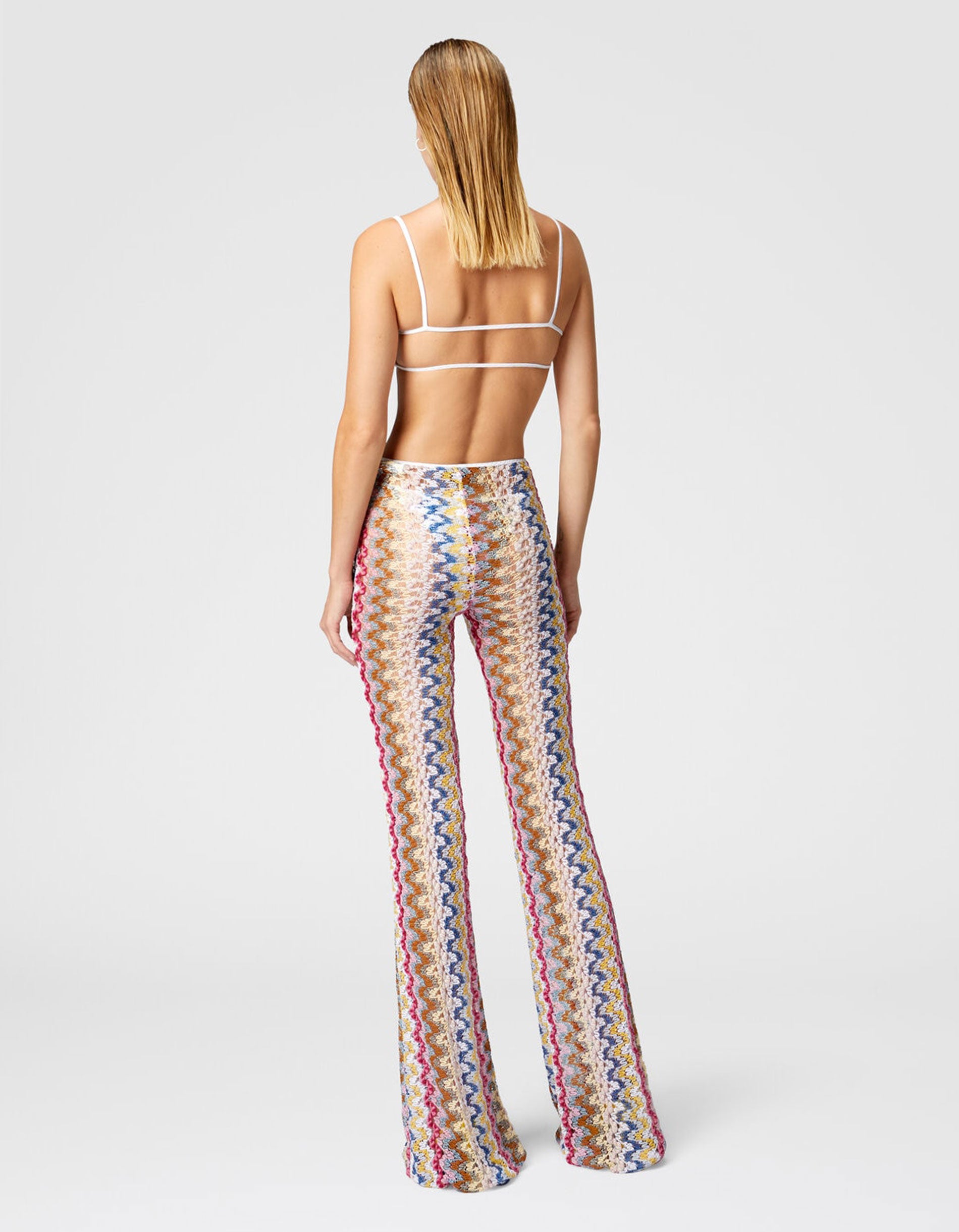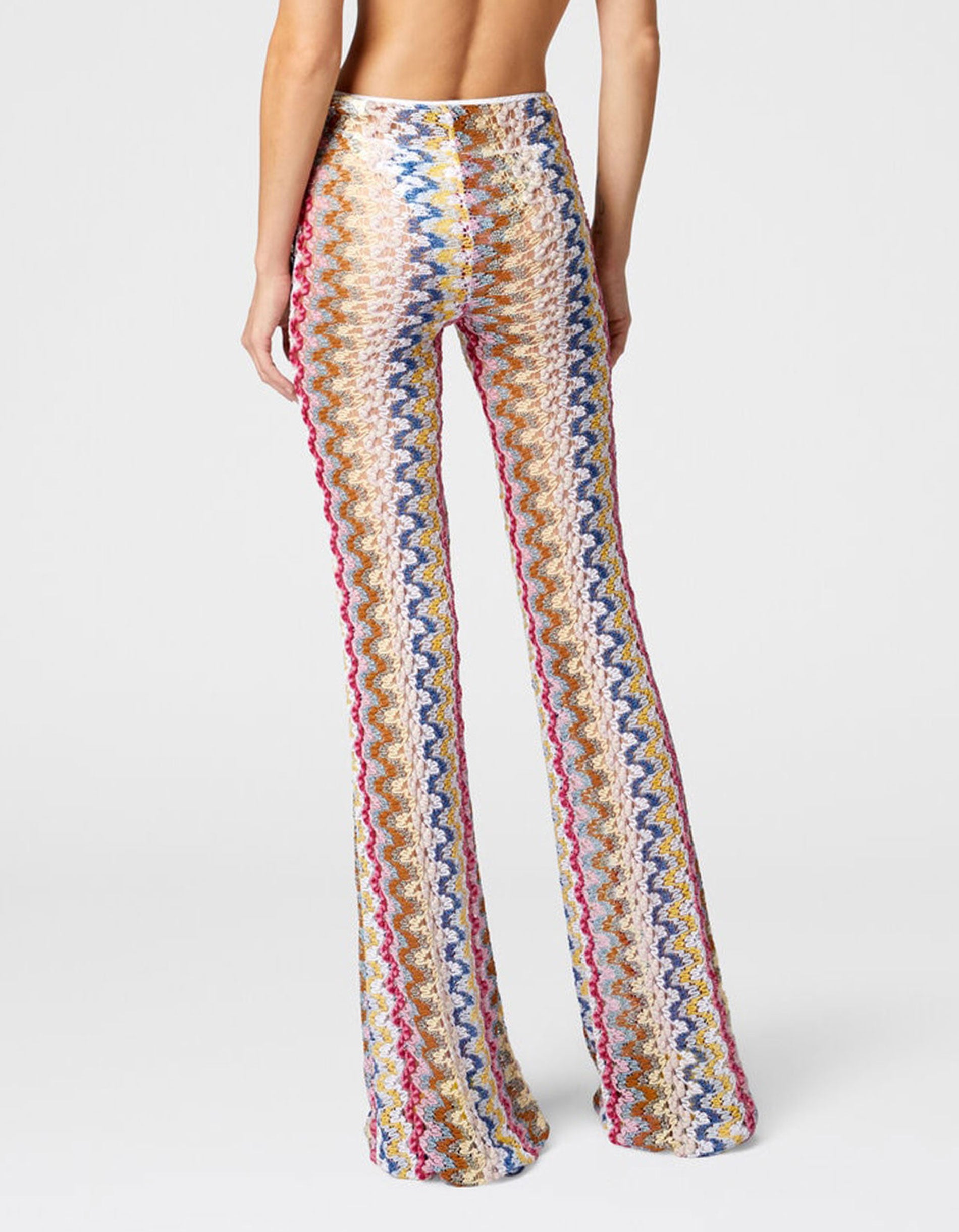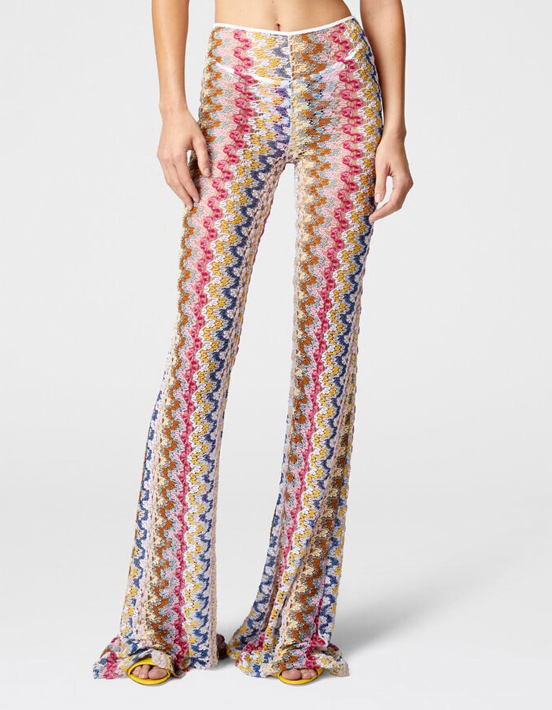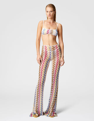 Ausgestellte Low-Waist Hose aus Lamé-Viskose-Spitze
