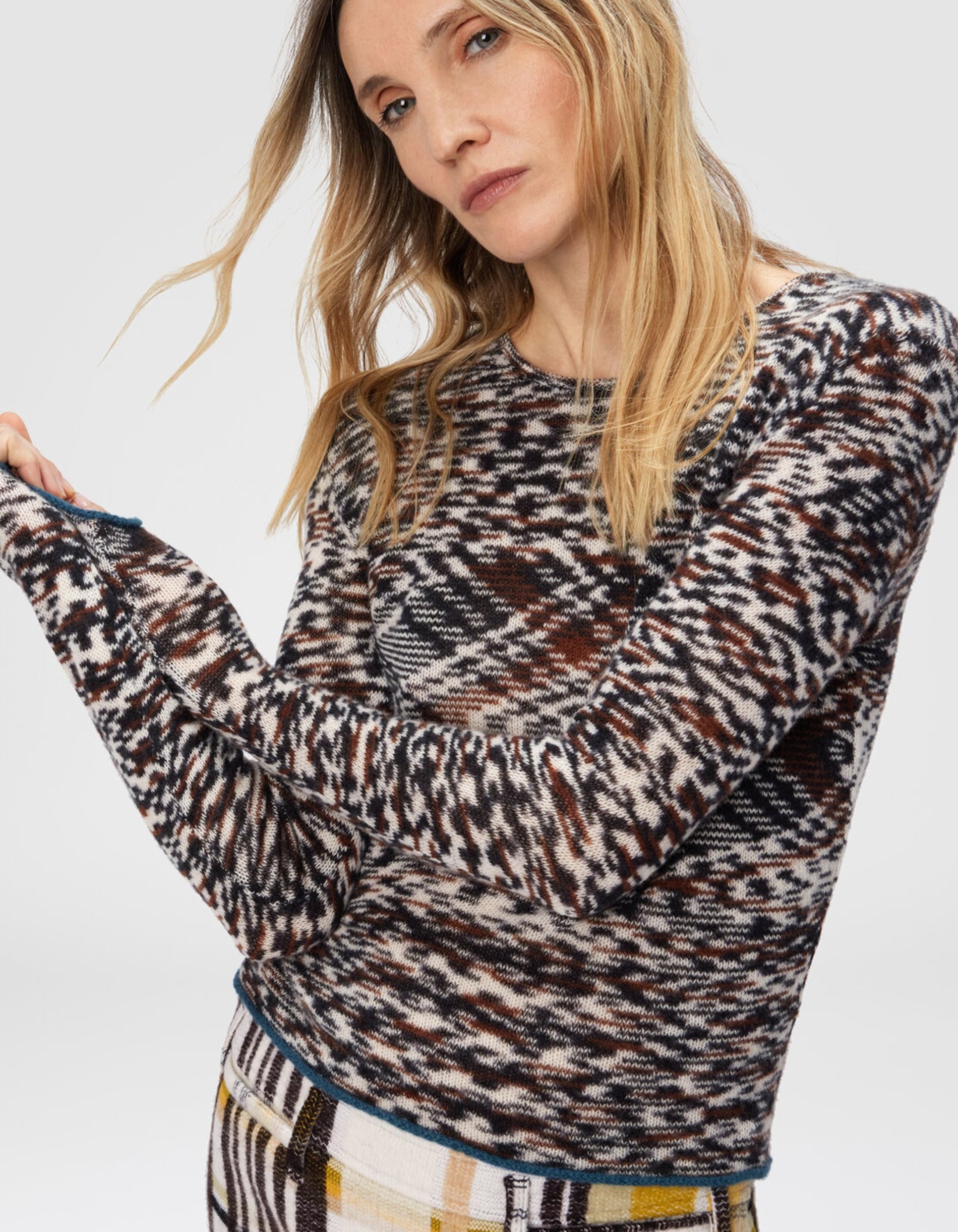 - Ärmel und Saumabschluss in Kontrastfarbe