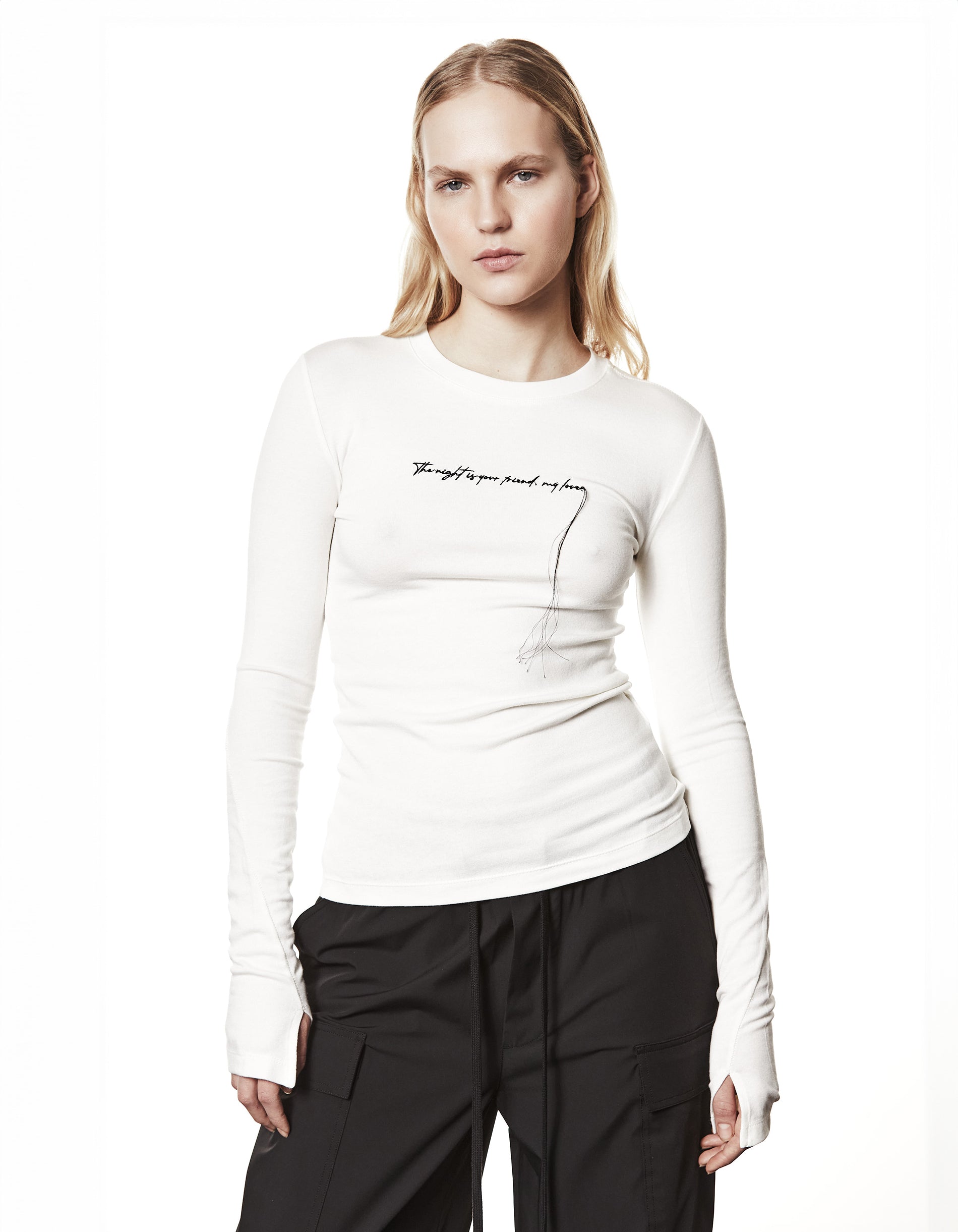Longsleeve mit besticktem Wording und Faden-Detail